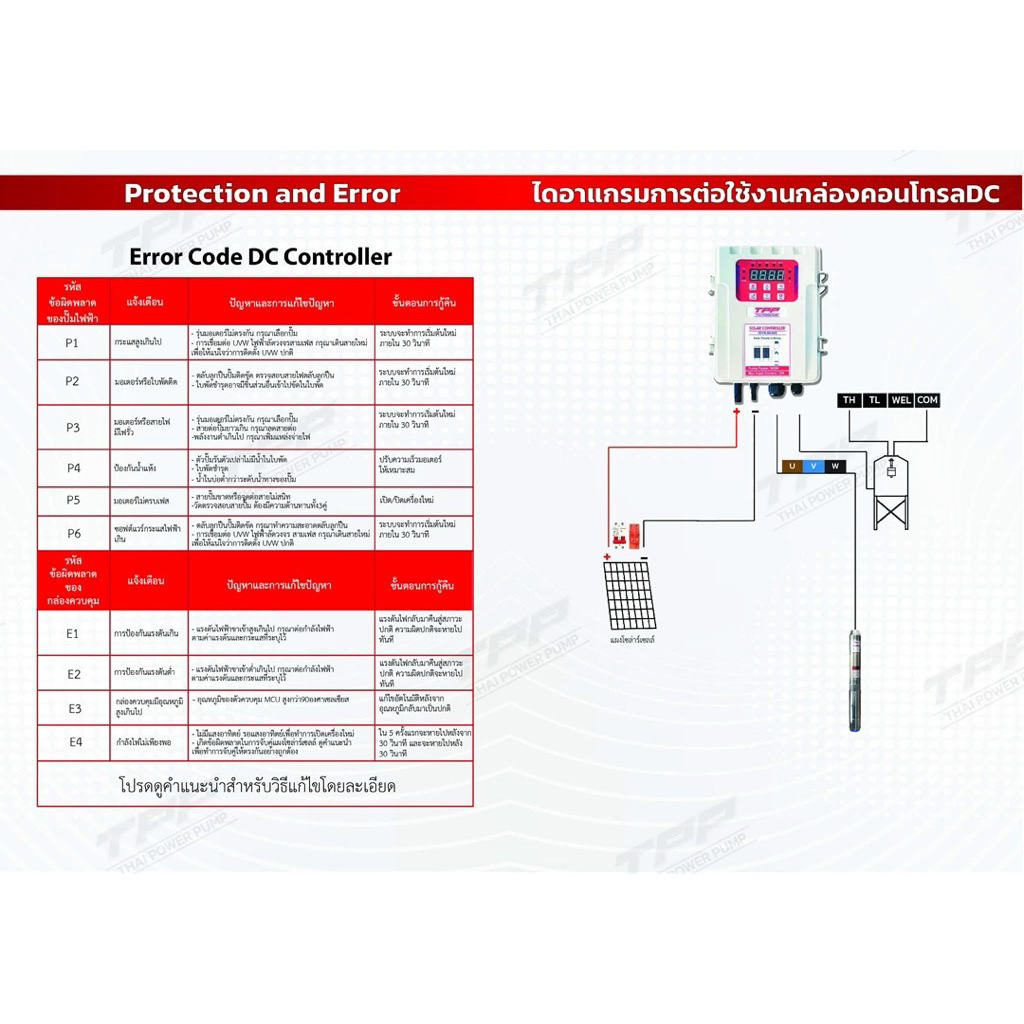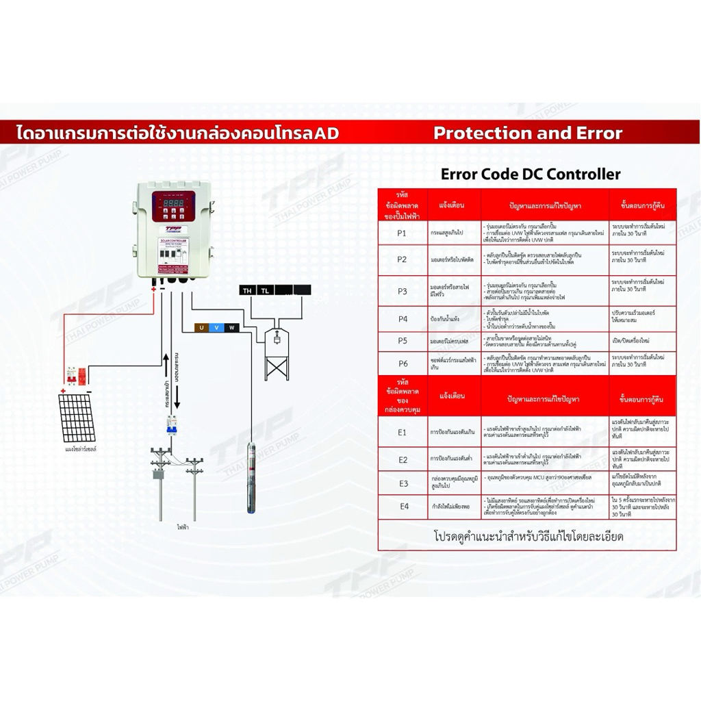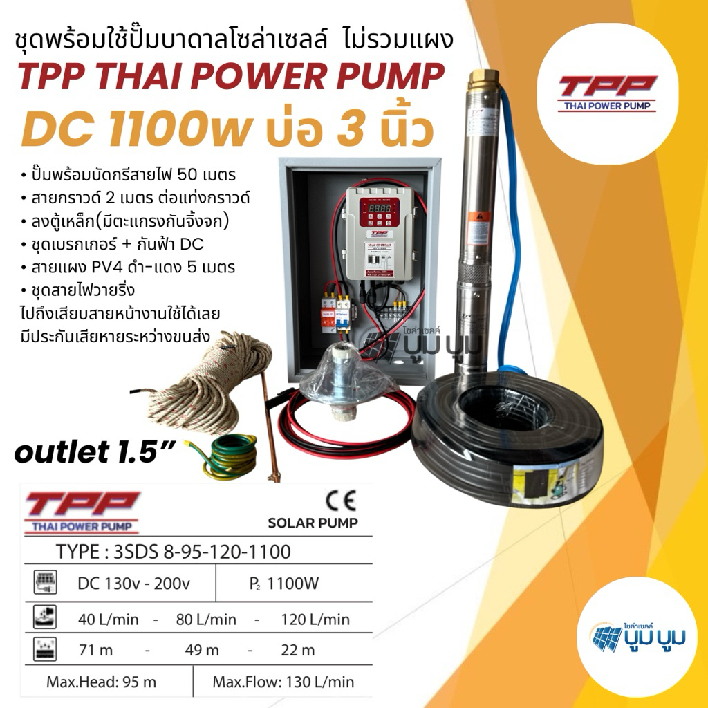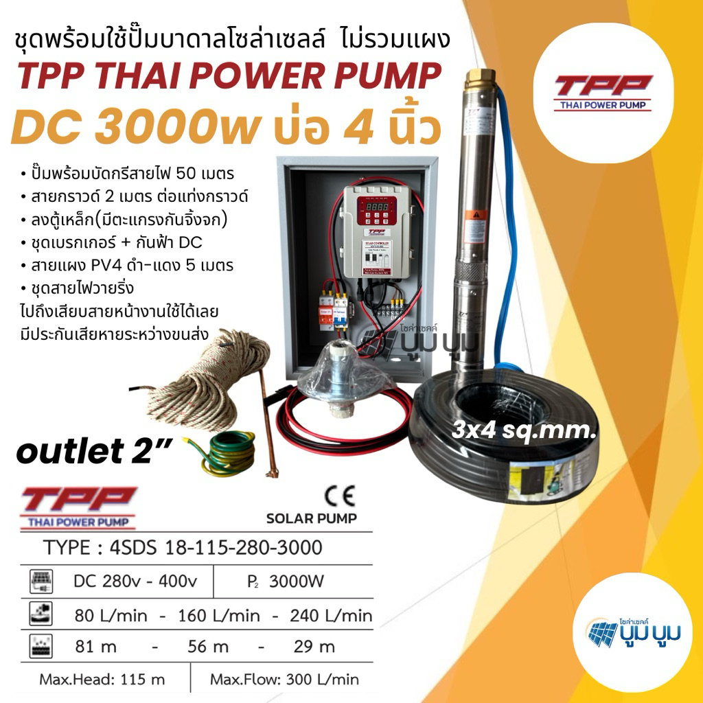 ชุดพร้อมใช้ปั๊มน้ำบาดาลโซล่าเซลล์ TPP DC 600w 800w 1100w 1500w 1800w 2200w 3000w Thai power pump