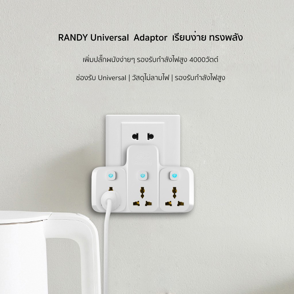 Randy ปลั๊กไฟ 16A3680W ปลั๊กแปลง ไม่ลามไฟ adapter UK EUรับกำลังไฟสูง หัวชาร์จ USB ทองแดง100%