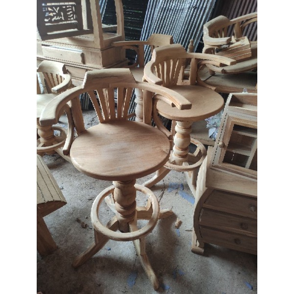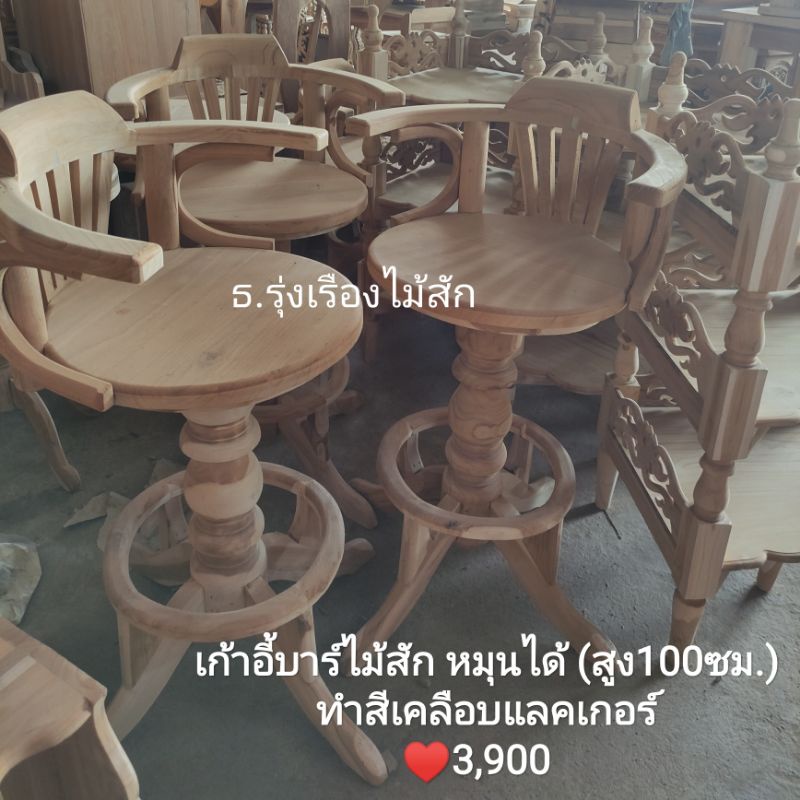 เก้าอี้บาร์ไม้สักตัวสูงหมุนได้ มี2ขนาด สูง70 หรือ100 ซม.