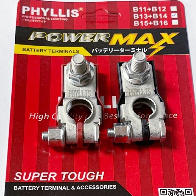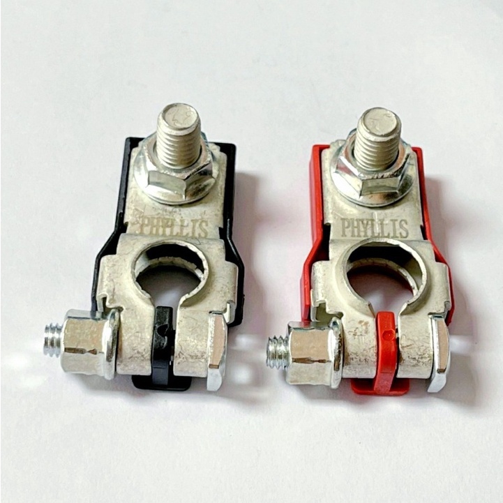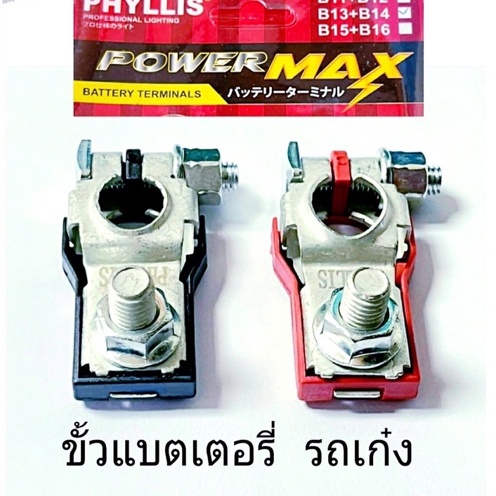 ขั้วแบตเตอรี่ รถเก๋ง PHYLLIS อย่างดี +บวก - ลบ สำหรับรถรถเก๋งขนาดเล็ก กลาง ขั้วแบตมาตรฐาน ลบ-12 mm. บวก+13.3 mm.