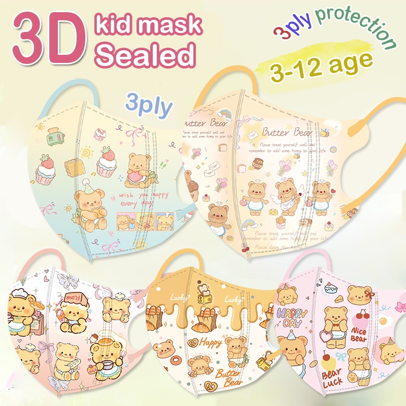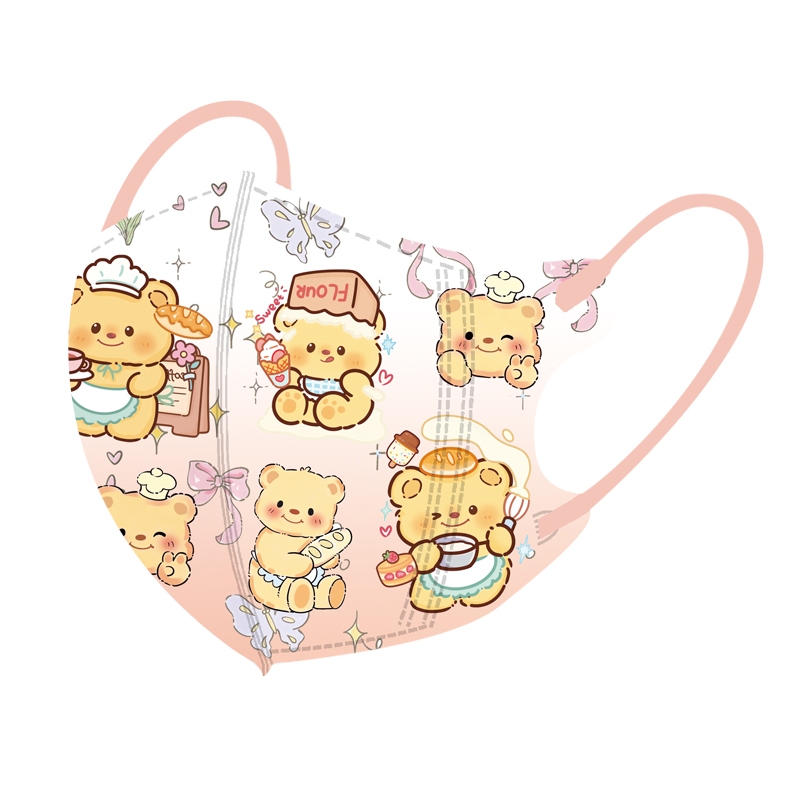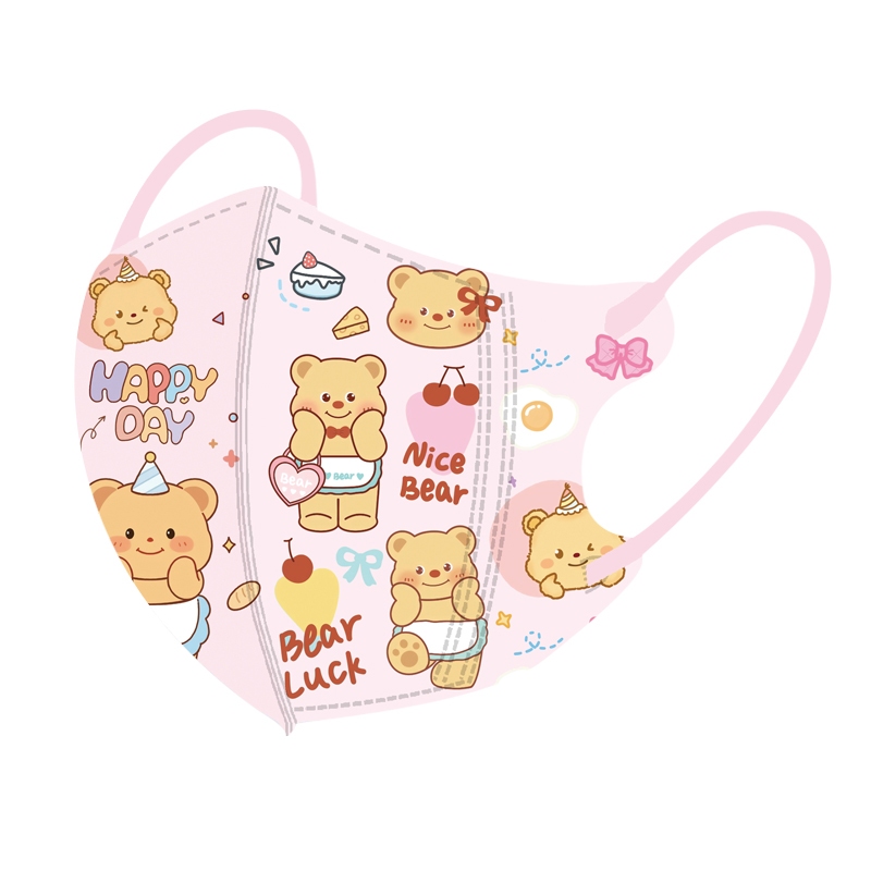 50 ชิ้น แมสเด็ก3D การ์ตูนเนยหมีเด็กสาวทิ้งสามมิติหมีสายรุ้งพิมพ์การ์ตูนบรรจุภัณฑ์อิสระ 3Dหน้ากากเด็ก