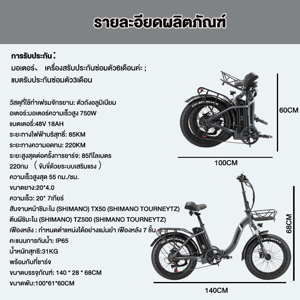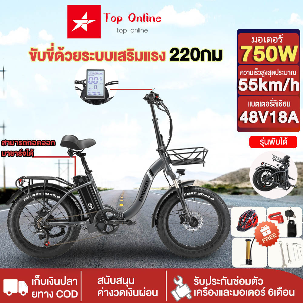 TOP จักรยานไฟฟ้า 750W แบตลิเที่ยม48V18ah Electric bike ความเร็วสูงสุด 55KM/H lithium battery ขับขี่ด้วยระบบเสริมแรง220KM