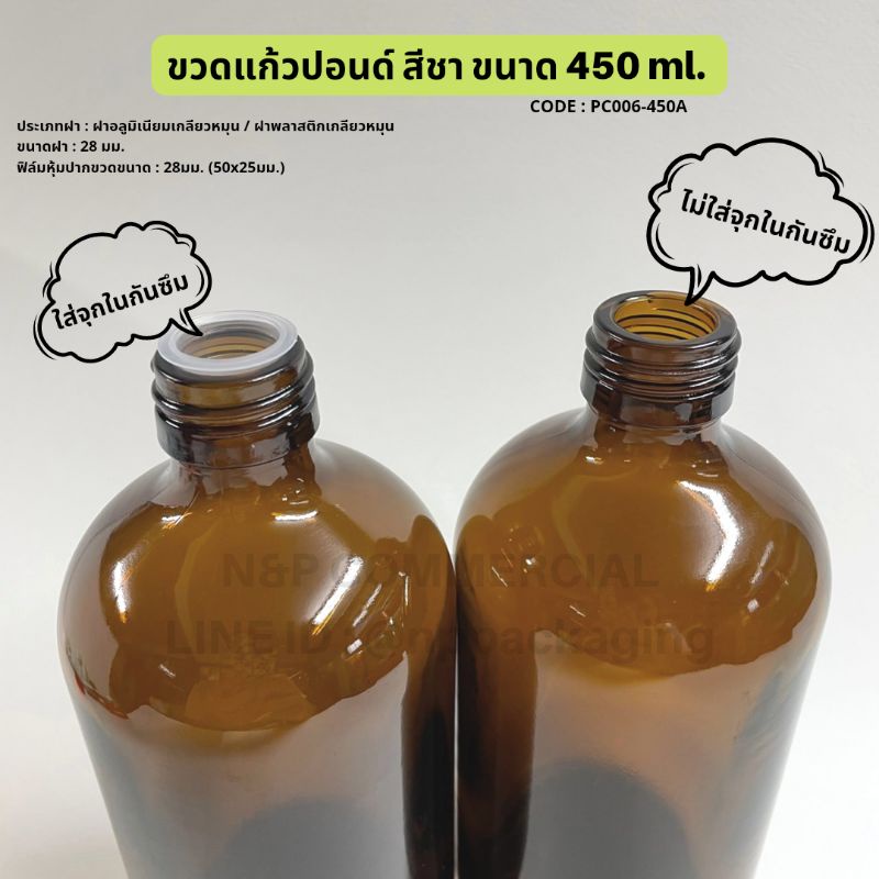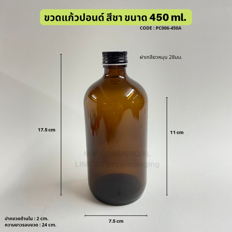 ขวดแก้วกลมสีชา 450ml พร้อมฝา 28มม [Code : PC006-450A]