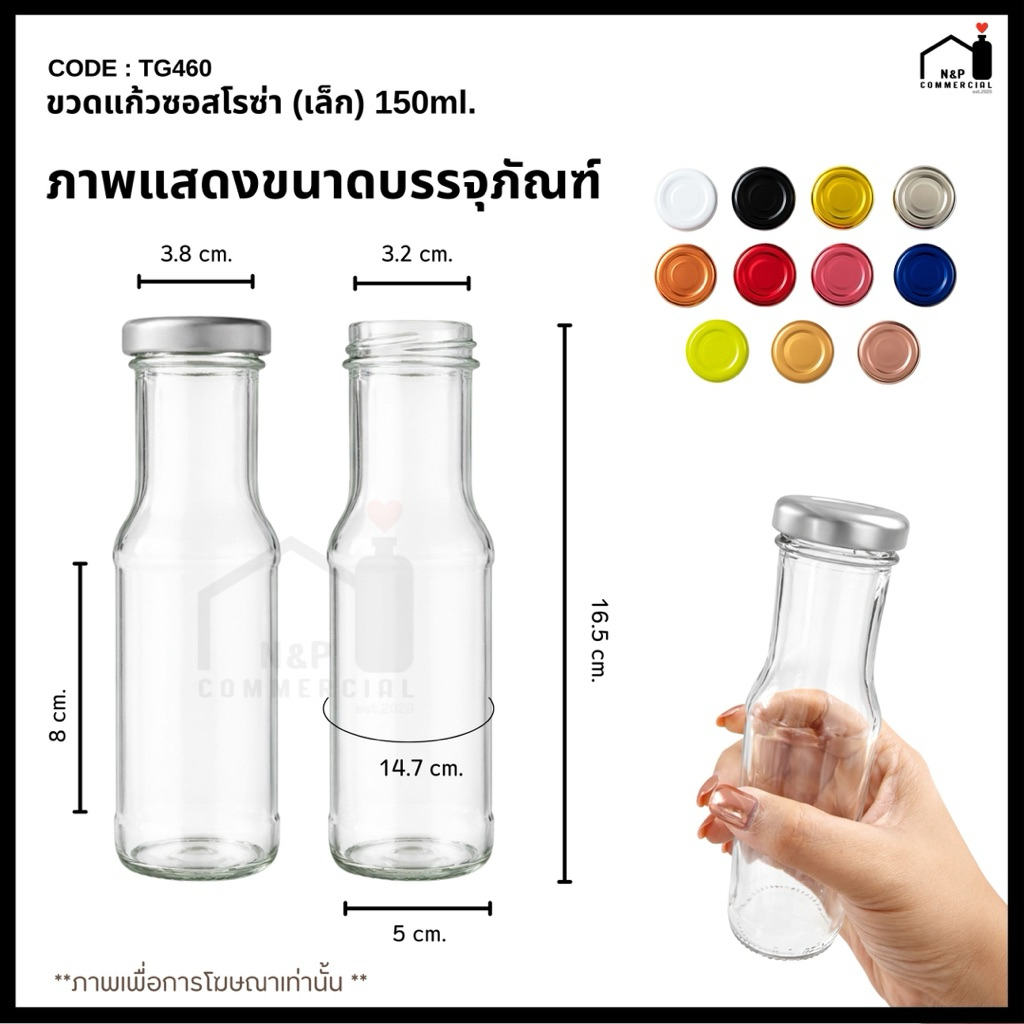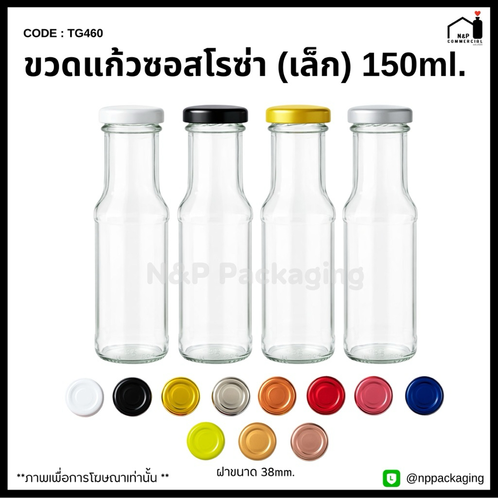 [TG-460] ขวดแก้วซอสโรซ่า(เล็ก) 150ml. พร้อมฝา 38mm.