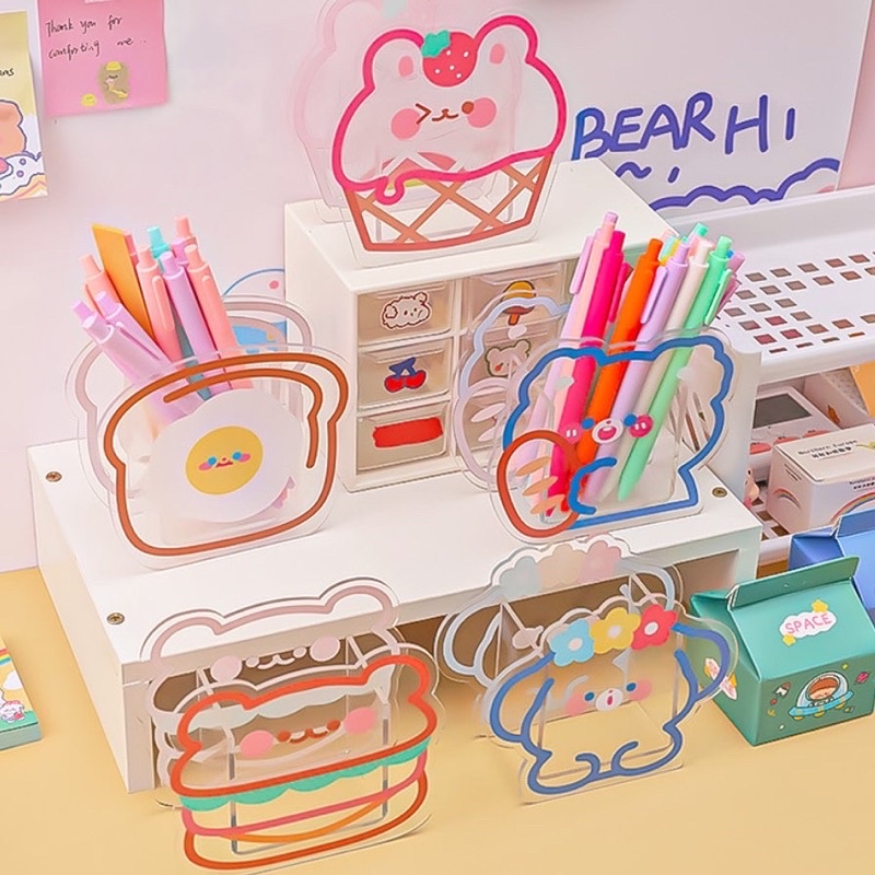 🌷🌷กล่องใส่ปากกา ที่ใส่ปากกาลายการ์ตูน สุดน่ารัก ทำจากพลาสติกอะคริลิค