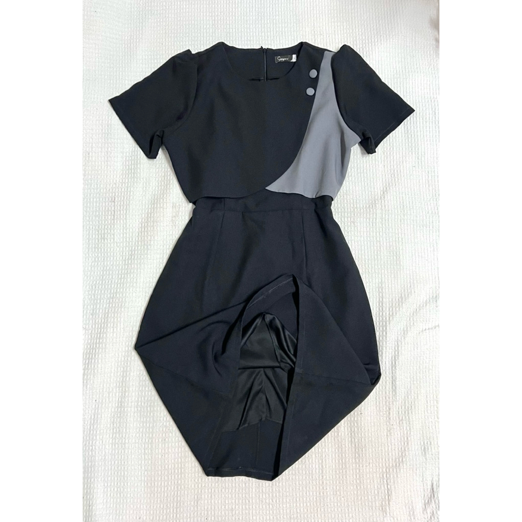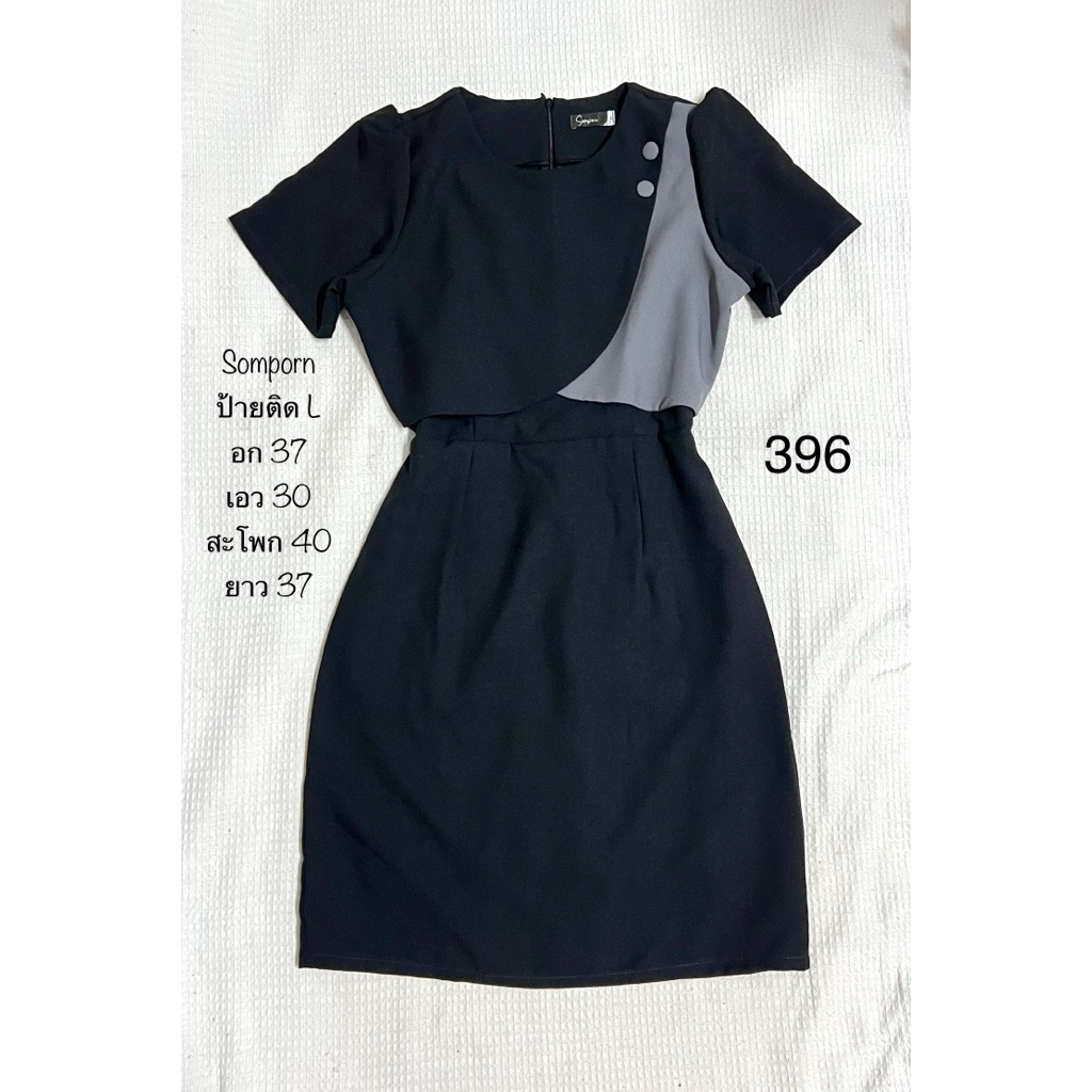 (396) เดรสใส่ทำงานสีดำตัดเทา ป้าย Sompron ไซส์ L ใหม่เทียบมือ 1