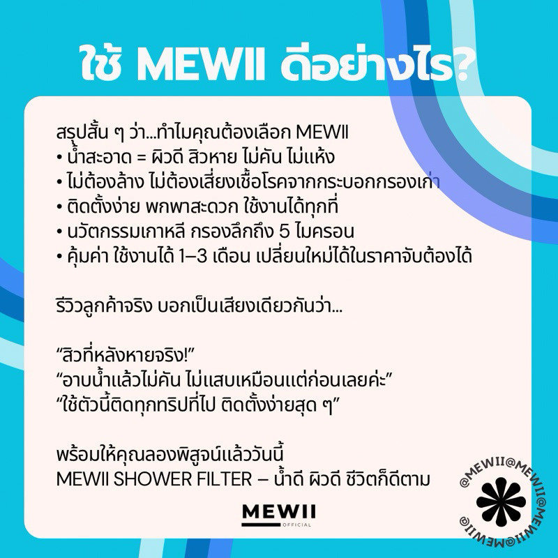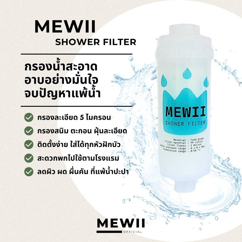 MEWII SHOWER FILTER กรองน้ำฝักบัว กรองน้ำอาบ ฟิวเตอร์กรองน้ำ ฝักบัวกรองน้ำ