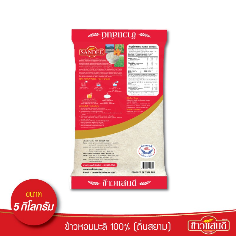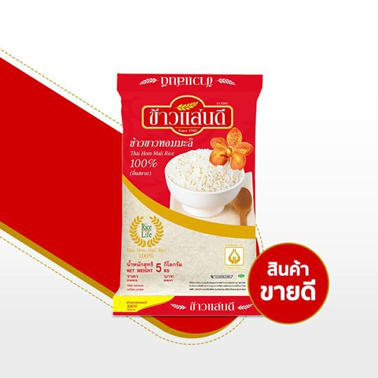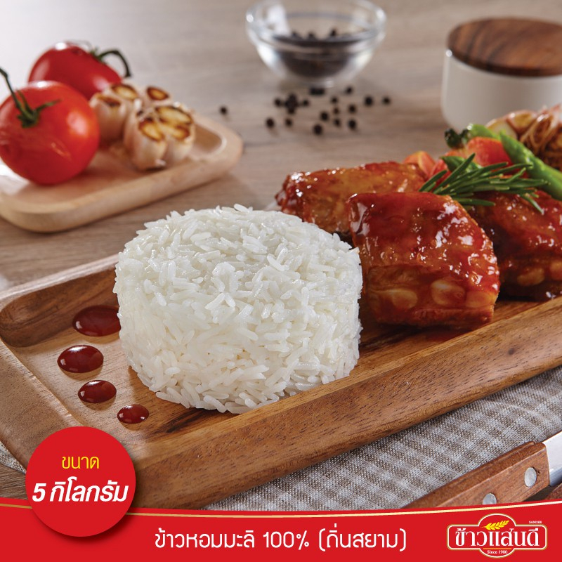 ข้าวแสนดี ข้าวหอมมะลิ 100% ถิ่นสยาม 5 กก. จำนวน 5 ถุง Thai Hommali Rice 100%