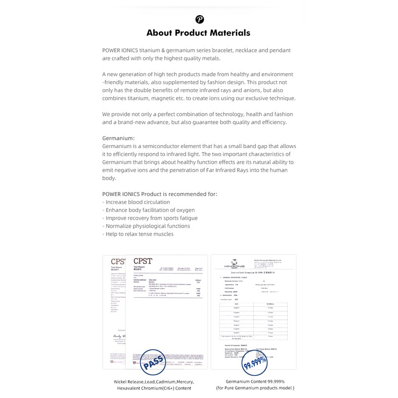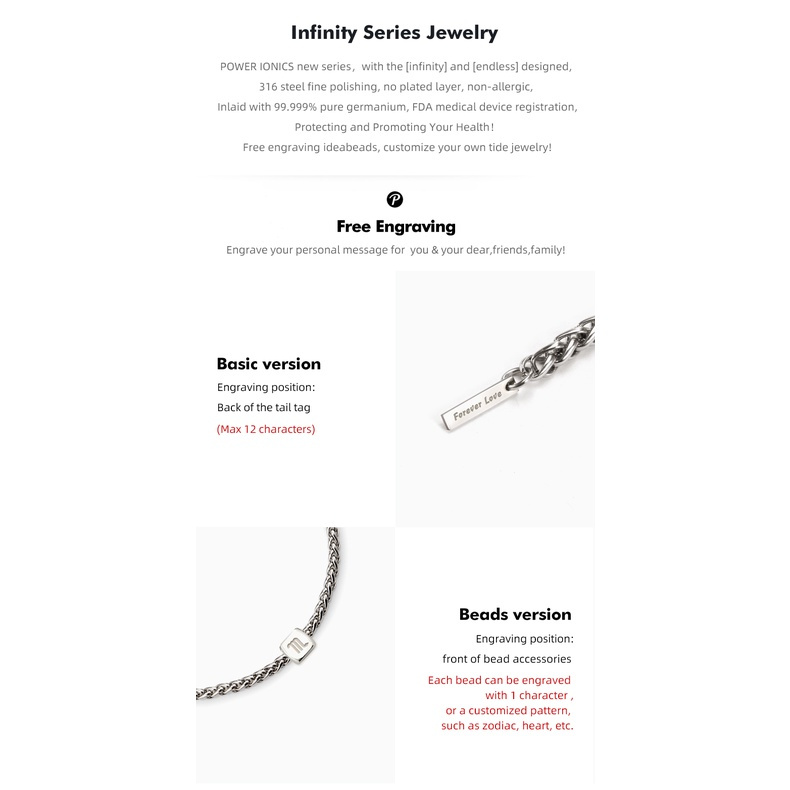 เครื่องประดับสร้อยข้อมือแฟชั่นผู้ชายผู้หญิง Power Ionics Infinity 99.999%