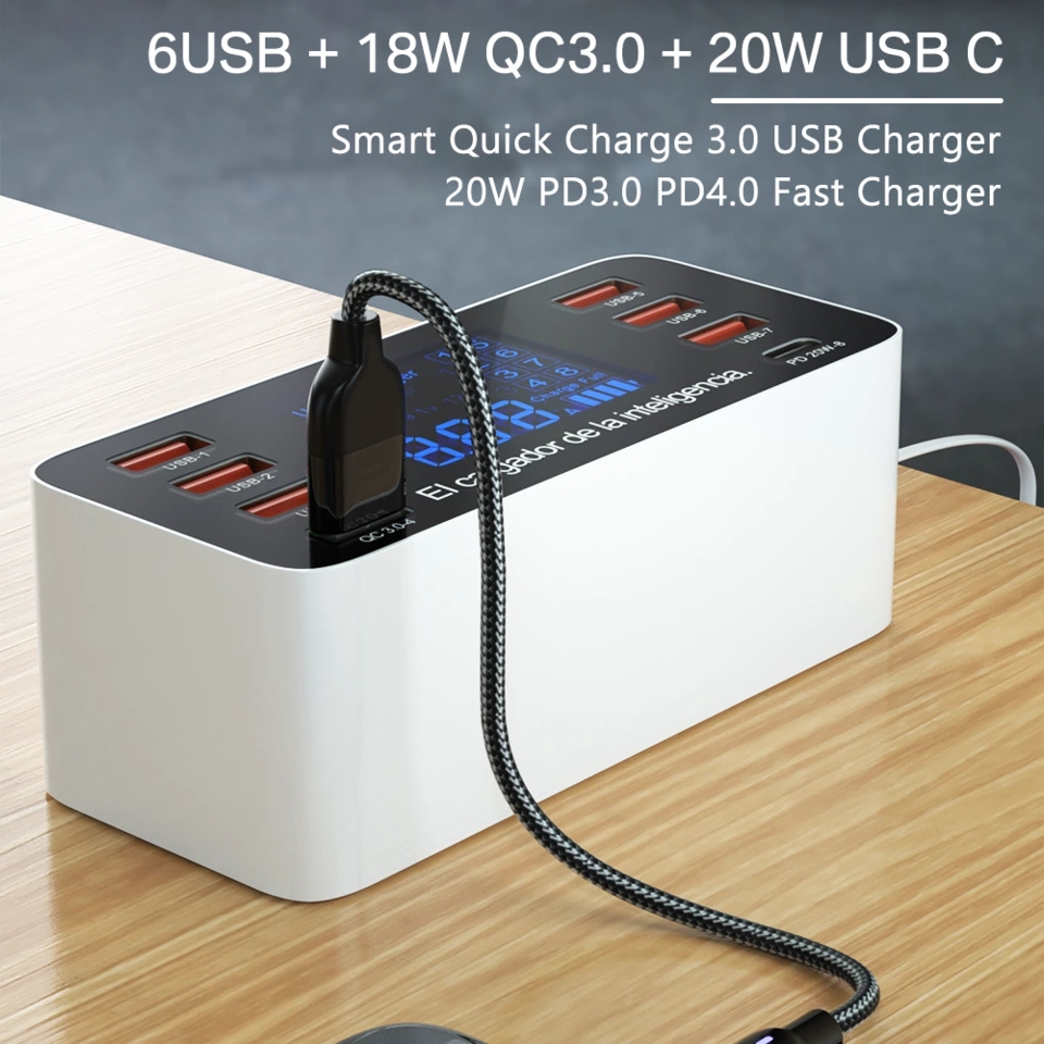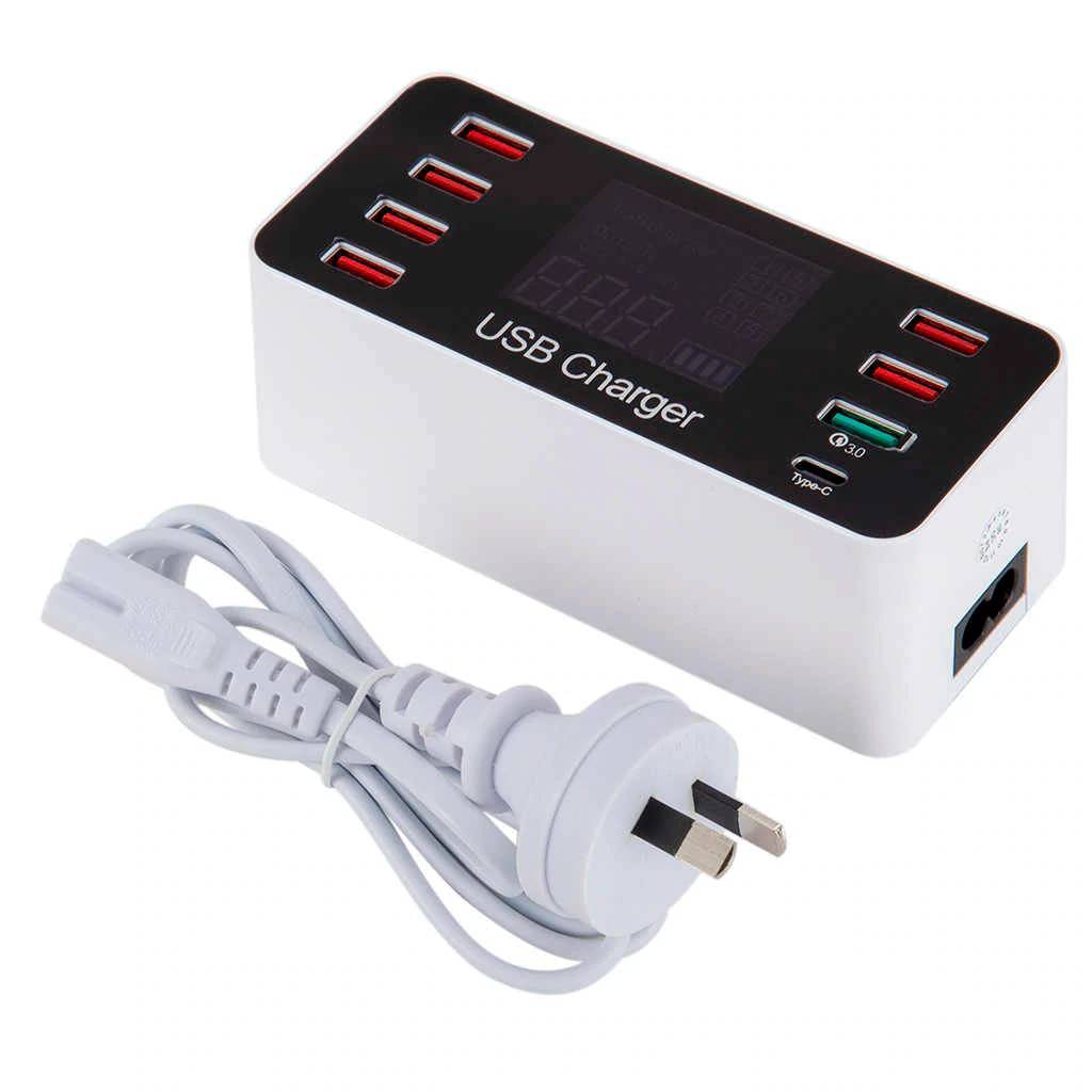 เครื่องชาร์จ USB 60W 8 พอร์ต CE FCC ROHS QC3.0 เครื่องชาร์จโทรศัพท์มือถือ ชาร์จเร็วมาก