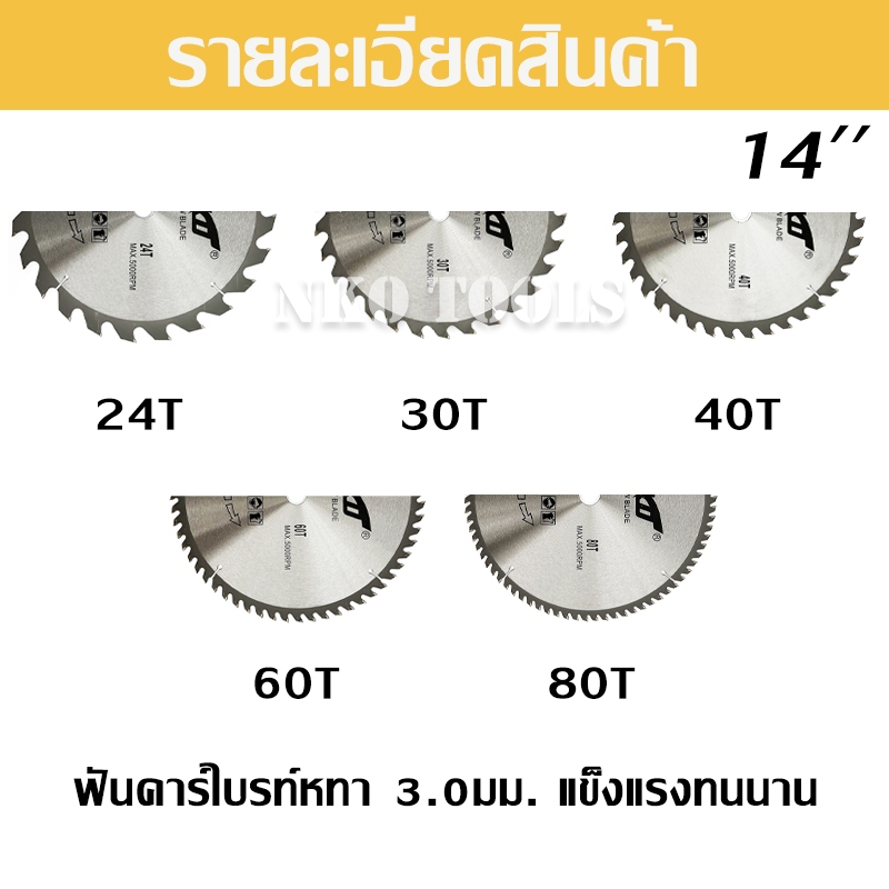 NKO ใบเลื่อยวงเดือน 14นิ้ว ใบเลื่อยตัดไม้ ตัดอลูมิเนียม ฟันคาร์ไบด์หนา 3.0มม. 24-30-40-60-80-120ฟัน