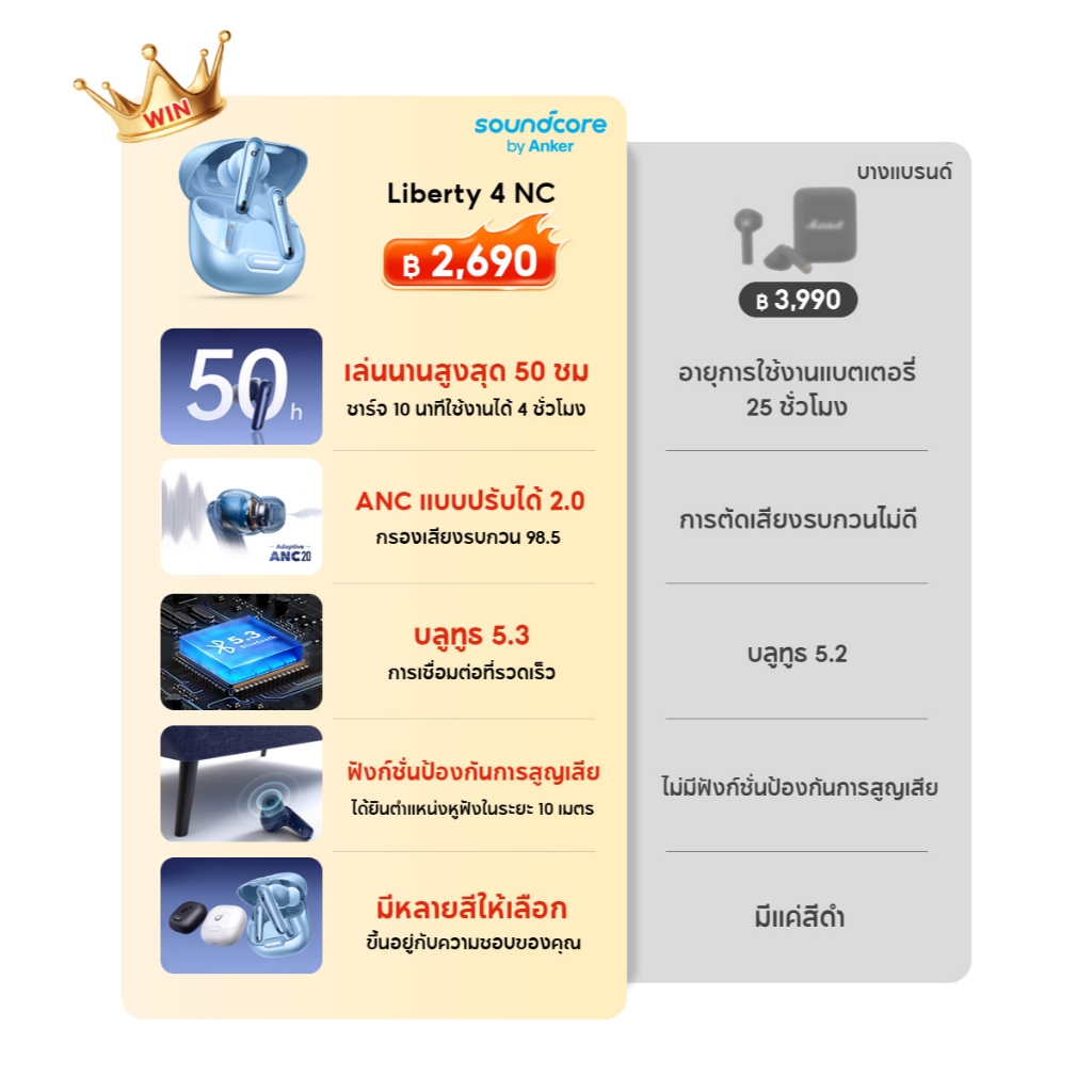 Soundcore by Anker Liberty 4 NC หูฟังบลูทูธไร้สาย 5.3 ลดเสียงรบกวนAll-New True-Wireless Earbuds Reduce Noise 98.5% A3947