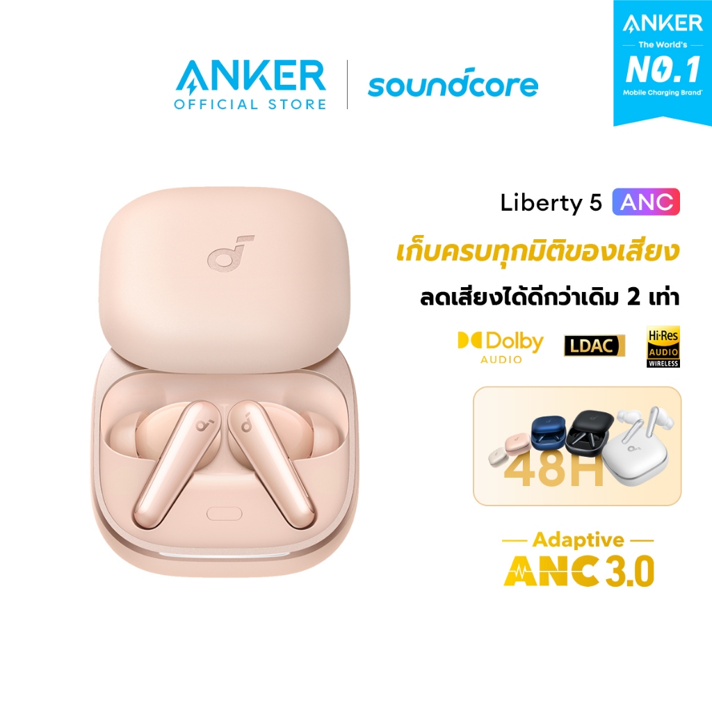 [HOT]Soundcore by Anker Liberty 5 ANC หูฟังไร้สาย Bluetooth 5.4 Earbuds Adaptive Noise Cancellation 3.0 ใช้ได้นานถึง 48H
