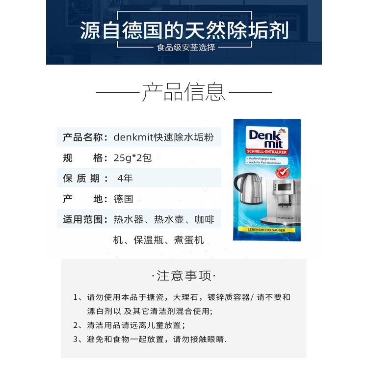 เยอรมนี denkmit กาต้มน้ำ ตัวแทนขจัดคราบตะกรัน น้ำยา ชา กาแฟ ขนาด/ผงสเกล 25g