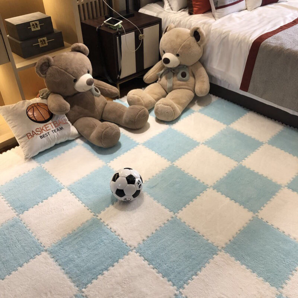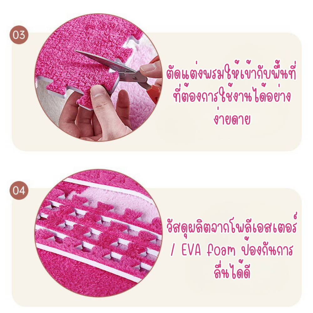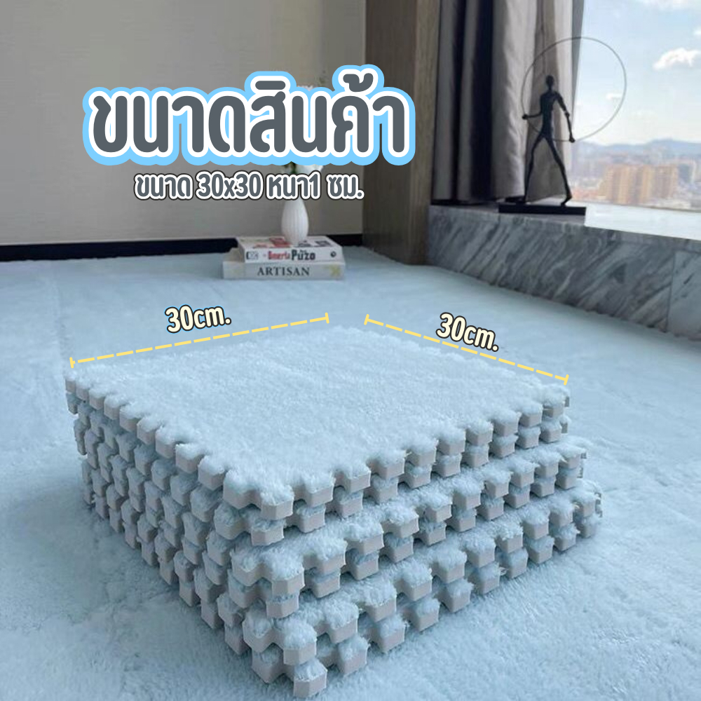 พรมจิ๊กซอว์ พรมปูพื้นขนนุ่ม มีขอบปิดขนาด 30*30cm ความหนา 1ซม พื้นผิวอ่อนนุ่ม เหมาะสำหรับเด็ก แผ่นโฟมรองคลานกันกระแทก