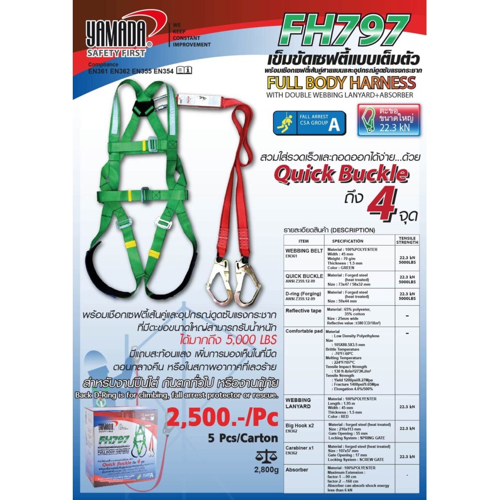 YAMADA เข็มขัดนิรภัยเซฟตี้เต็มตัว รุ่น FH797