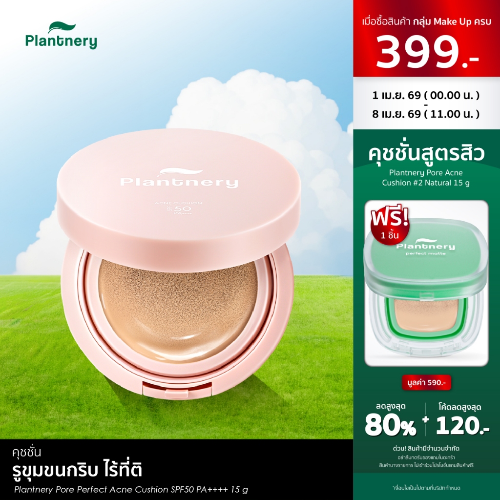 Plantnery Pore Perfect Acne Cushion SPF50 PA++++ 15 g คุชชั่นเพื่อผิวเป็นสิว ปกปิด รูขุมขนกริบไร้ที่ติ คุมมัน ไม่อุดตัน