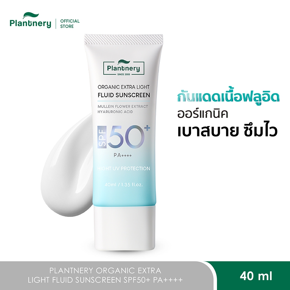 Plantnery Organic Extra Light Fluid Sunscreen SPF50+ PA++++ กันแดดเนื้อเซรั่มฟลูอิด สัมผัสเบาสบายผิว ซึมไว