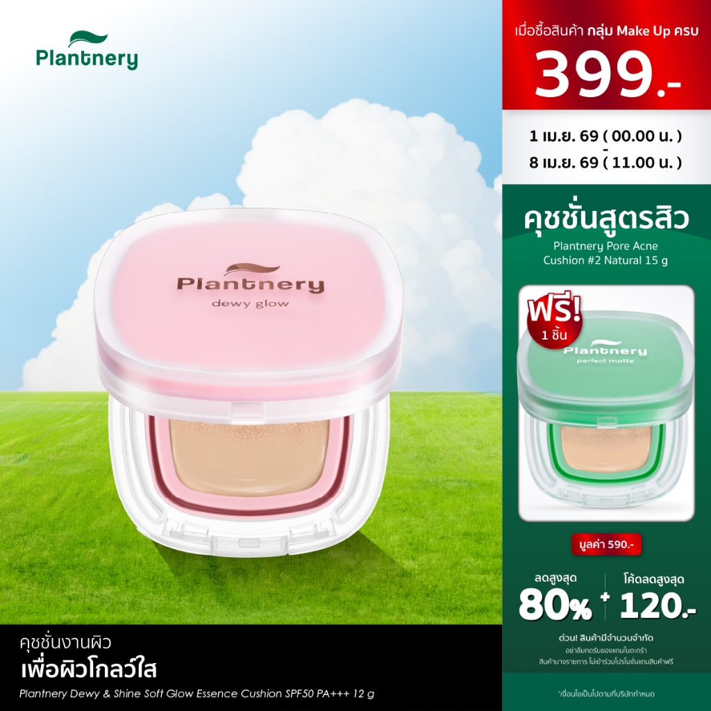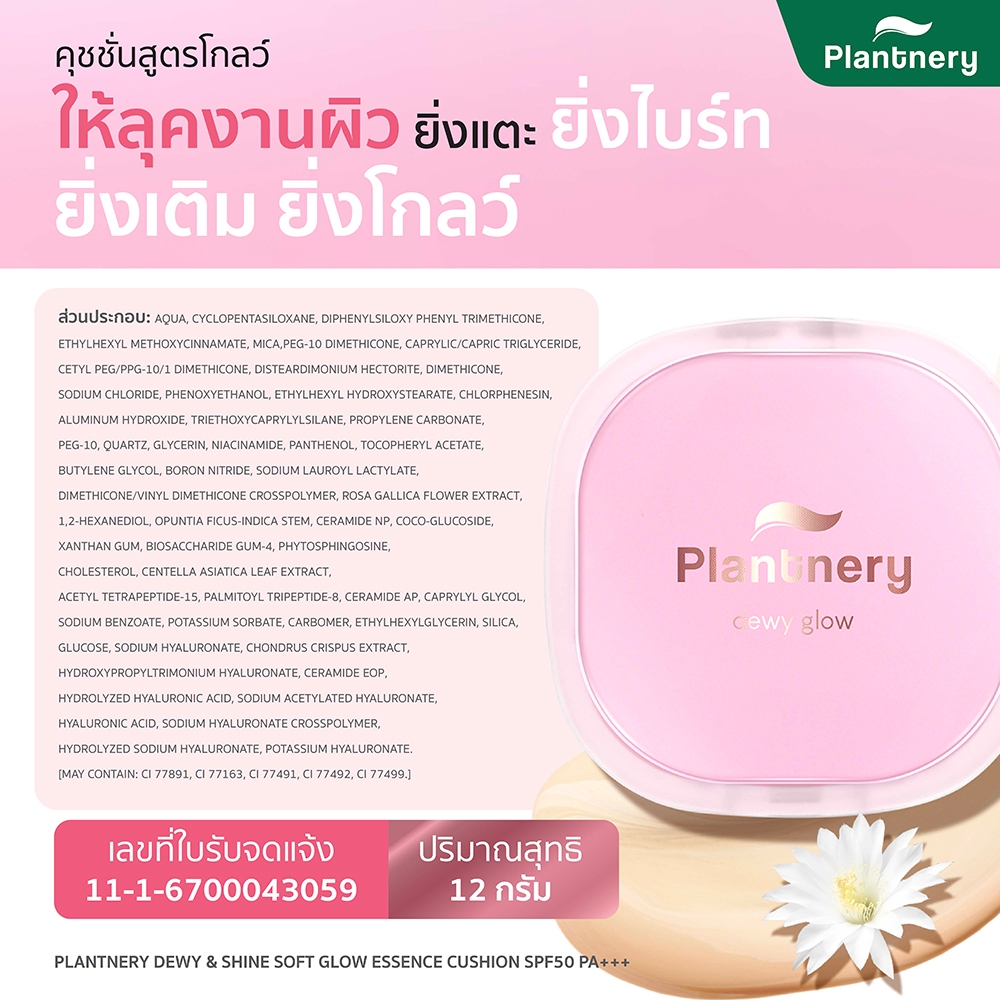 Plantnery Dewy & Shine Soft Glow Essence Cushion SPF50 PA+++ 12 g คุชชั่นสูตรโกล์ว ให้ลุคงานผิว ยิ่งแตะ ยิ่งไบร์ท