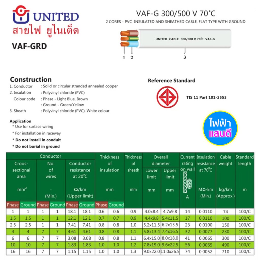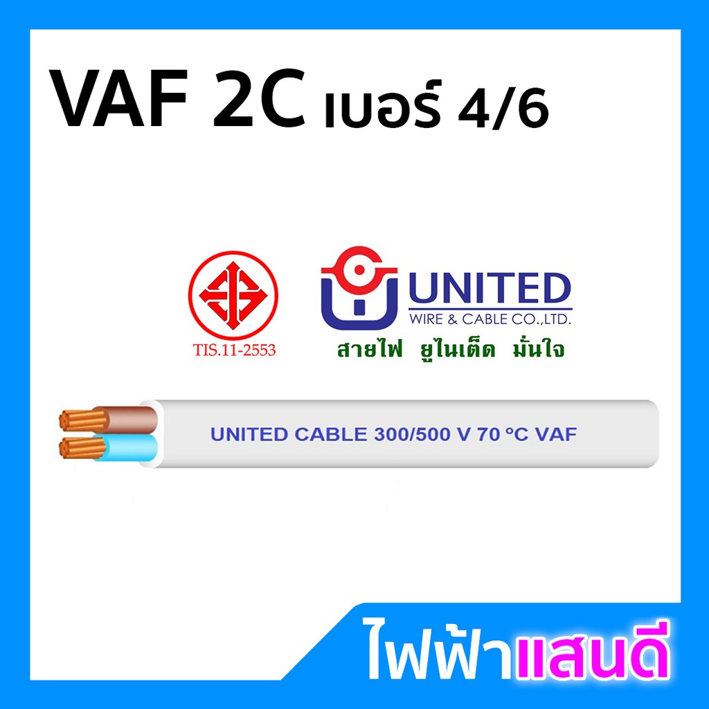 สายVAF 2x4 2x6 VAF-G 2x1.5/1.5 2x2.5/2.5 2x4/4 UNITED มอก.ใหม่อย่างดี 20m 30m 50m สายคู่ ยูไนเต็ด