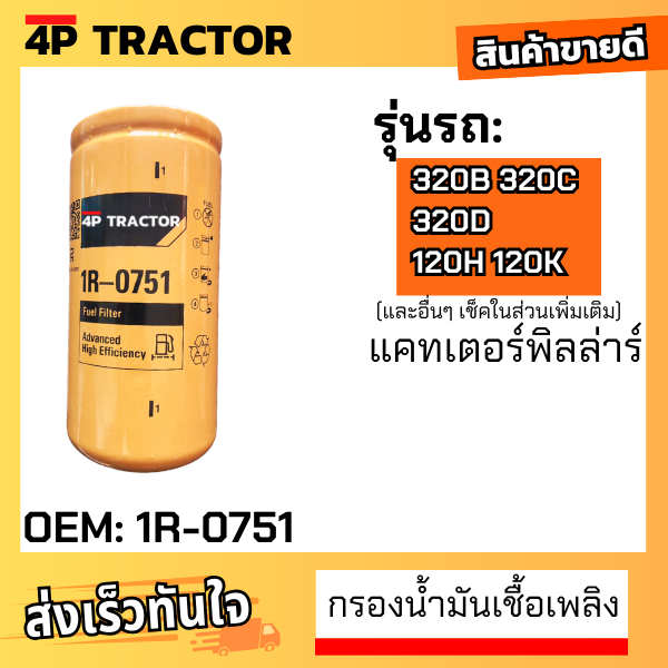 (OEM: 1R-0751 1R0751) กรองโซล่า 320C 320D 312D / 315 / E110B / E120B / D5M / รถบด CS563 / อะไหล่แมคโคร / อะไหล่แบคโฮ / อ