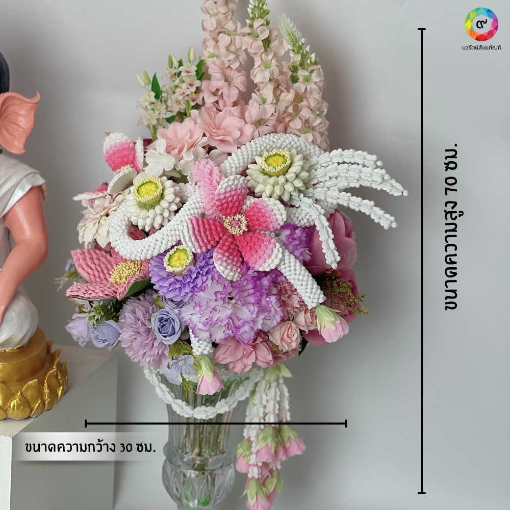แจกันช่อดอกไม้ผกามณีสีชมพูขนาดความสูง70 ซม.