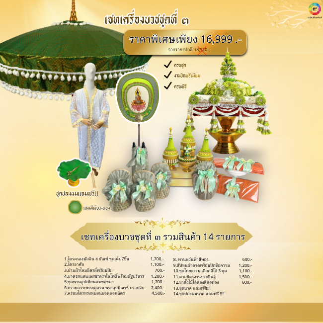 เซ็ทเครื่องบวชยอดนิยมโทนสีมงคลสุดคุ้ม