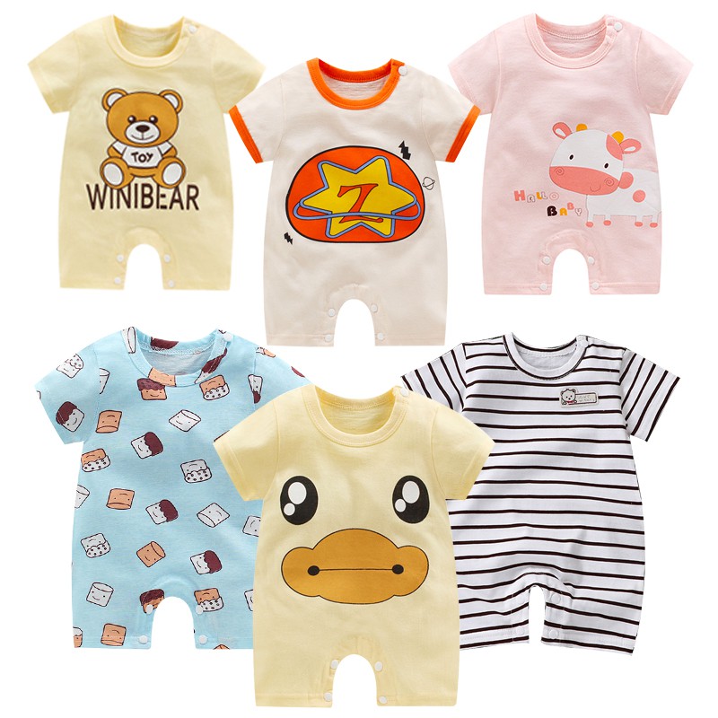 ชุดรอมเปอร์ ชนิดผ้าฝ้าย พิมพ์ลายการ์ตูน สำหรับเด็ก เสื้อผ้าเด็กแรกเกิด ชุดเด็กแรกเกิดผู้หญิง 0-12 เดือน ชุดเสื้อผ้าแขนสั้นเด็กแรกเกิด กระต่ายน่ารัก