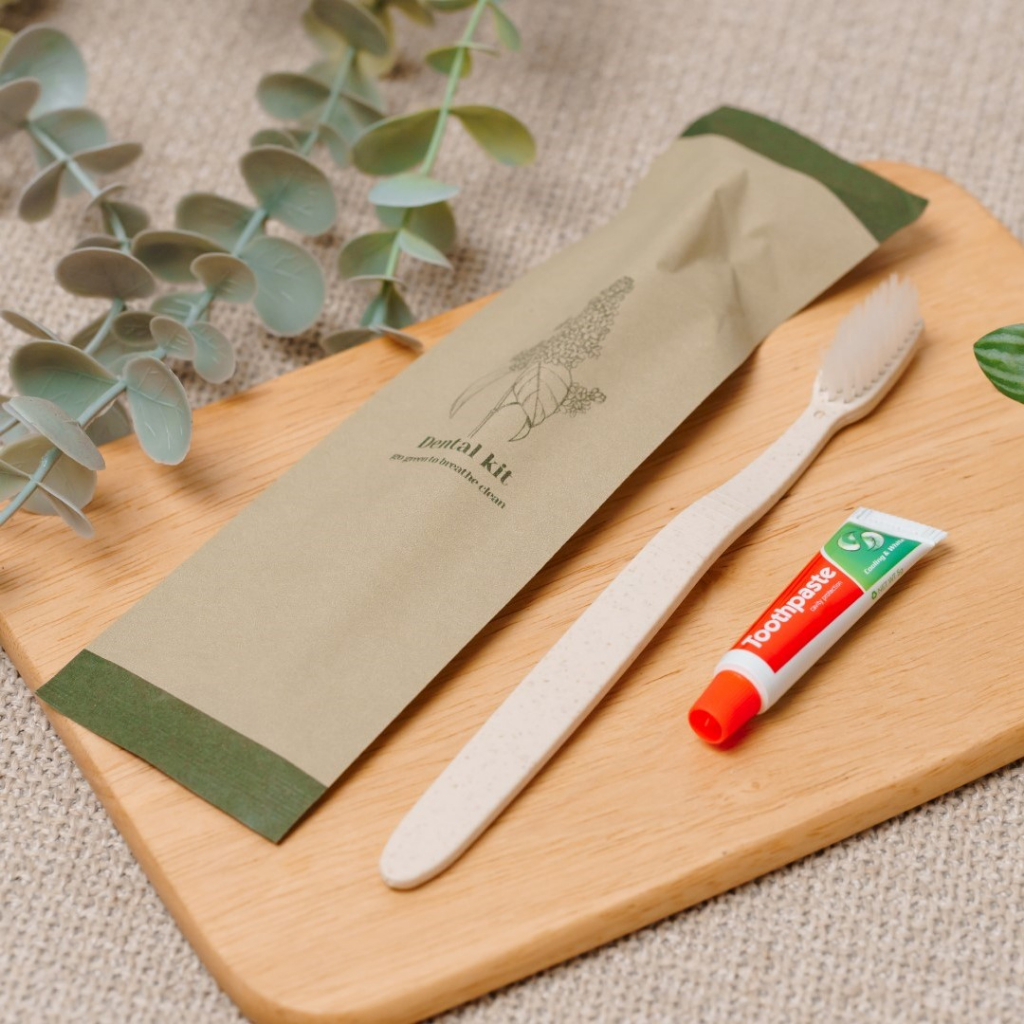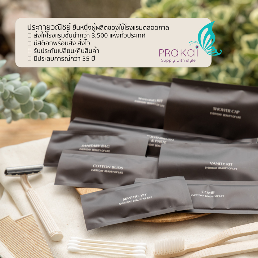 PRAKAIVANICH ชุดเอ็มจีสีเขียวของใช้ในโรงแรม Eco-Friendly(แบบย่อยสลายได้) แบบจัดเซ็ท【แพ็คละ 100 เซ็ท】