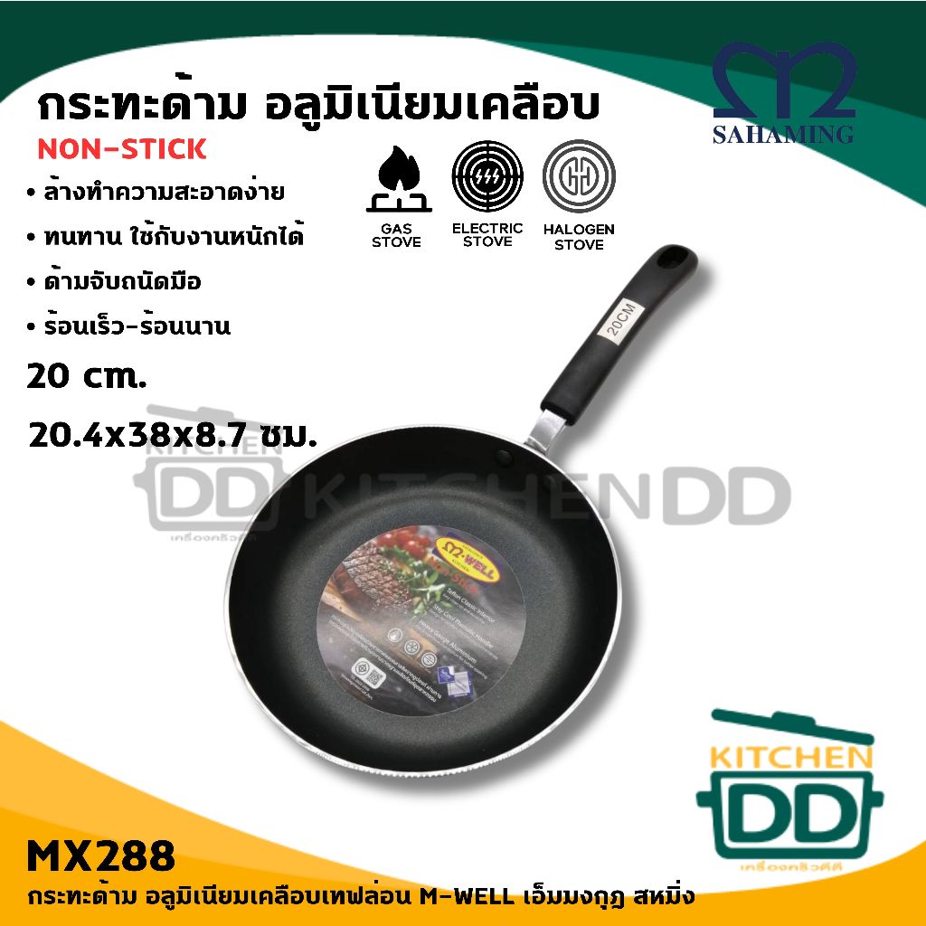กระทะด้าม เทฟลอน M-Well สหมิ่ง เอ็มมงกุฎ 18/20/24/28 ซม. - 1 ใบ
