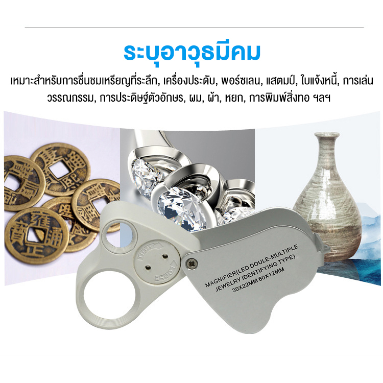 กล้องส่องพระ 2 เลนส์ กำลังขยาย 30 และ 60 เท่า พร้อม ไฟ LED ส่องพระ เ พชร พลอย จิวเวอรี่ พับเก็บได้ พกพาสะดวก