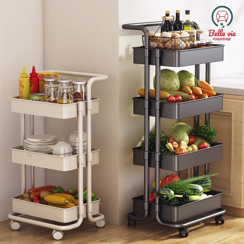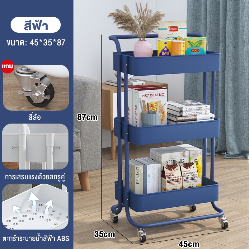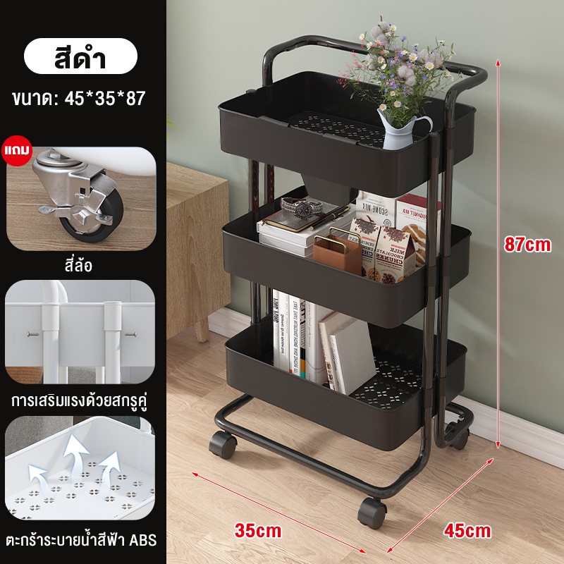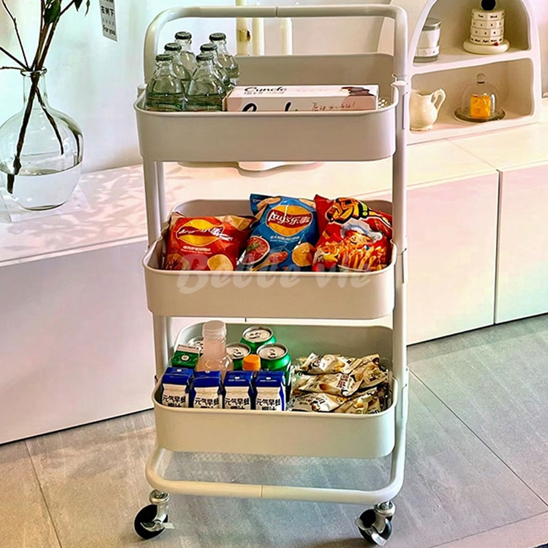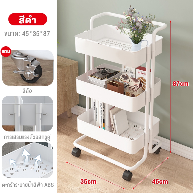 BV ชั้นวางรถเข็น พร้อมล้อเลื่อน+ที่จับ 3/4 ชั้นวางของมีล้อ พร้อมล้อเลื่อน+ที่จับ ใช้ในสถานการณ์ต่างๆ เคลื่อนย้ายสะดวก