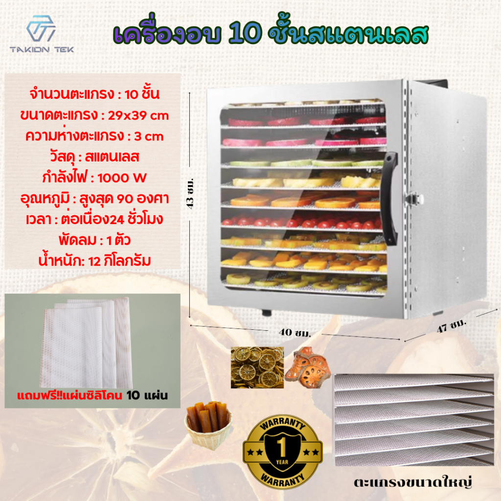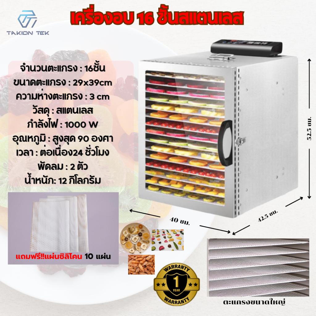 Taktionรุ่นฮิต+ประกัน1ปี ตู้อบลมร้อน เครื่องอบผลไม้ เตาอบ10/12/16ชั้น เครื่องอบลมร้อนฟรีแผ่นรองอบซิลิโคน10แผ่น วัสดุสแตน