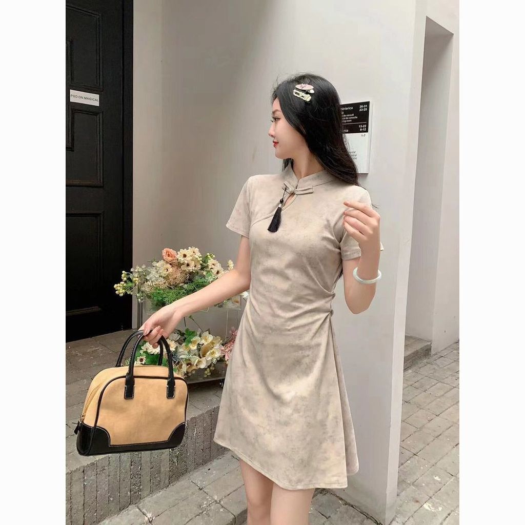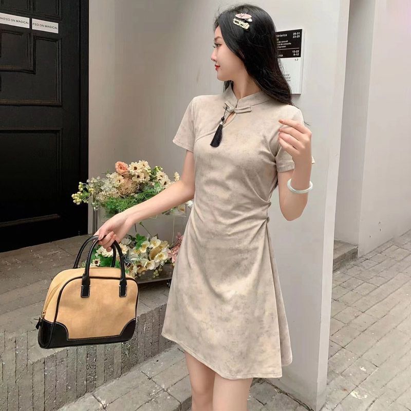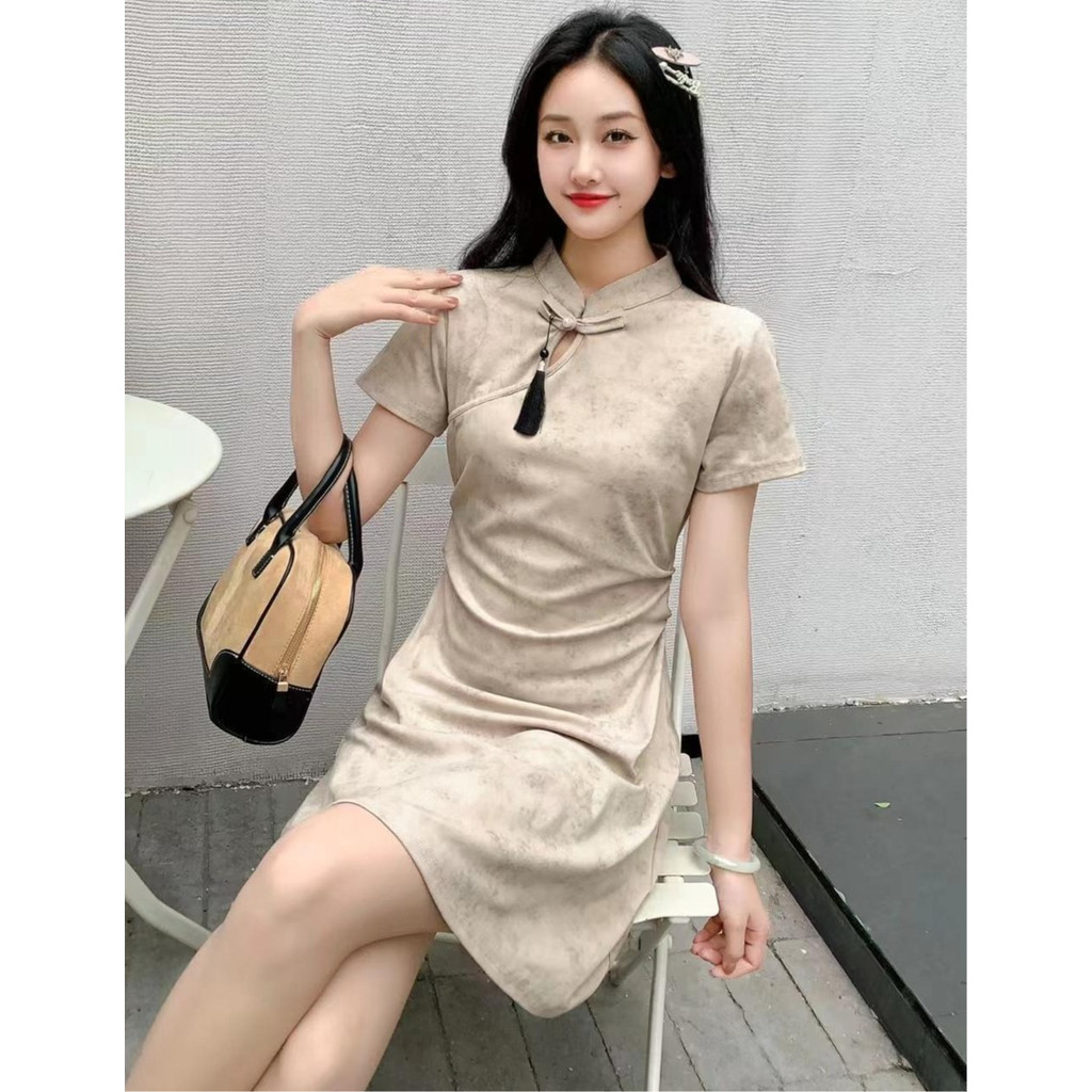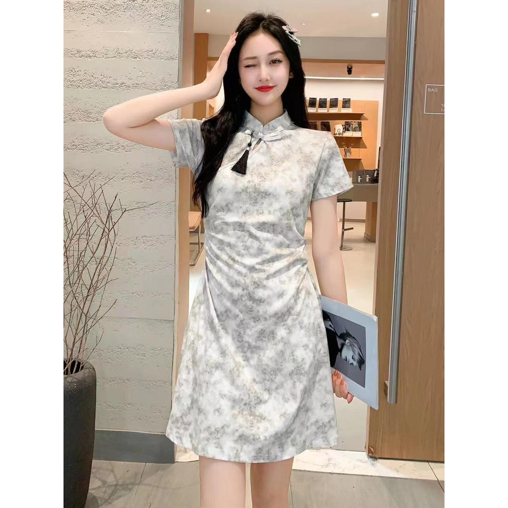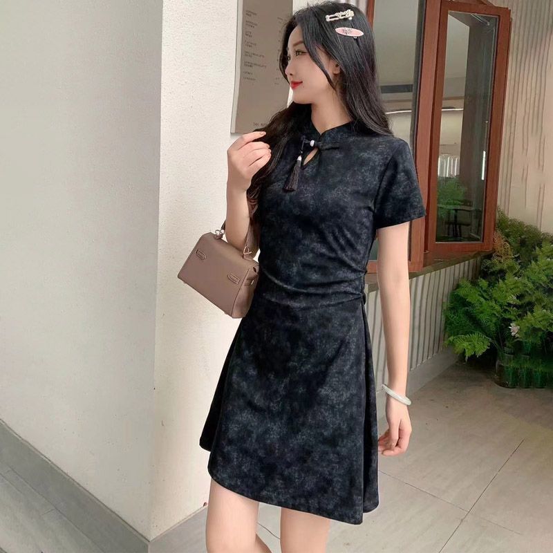 ฤดูร้อนใหม่สไตล์จีน cheongsam ผู้หญิง Slim Dress สไตล์สาว Retro ยืดหยุ่นใหม่สไตล์จีนพิมพ์กระโปรง