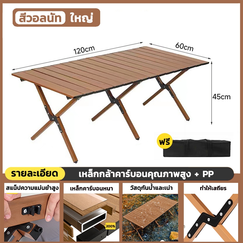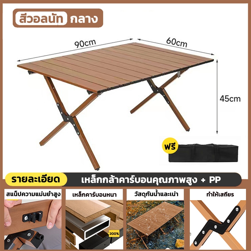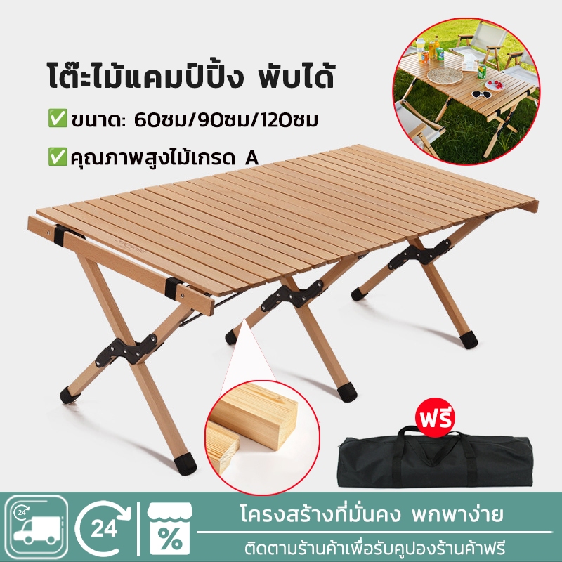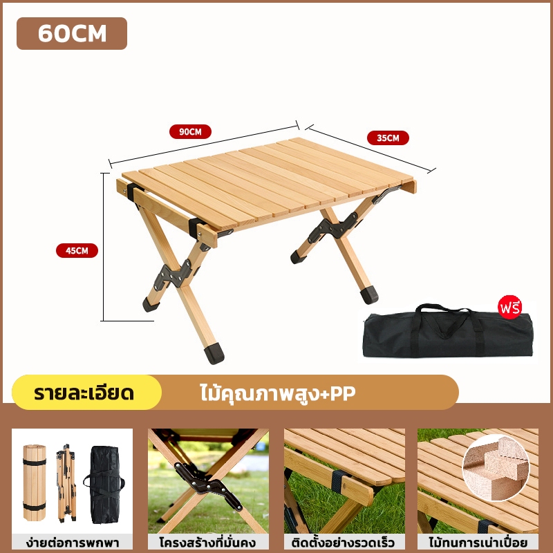 EOSM โต๊ะไม้พับได้ ไม้สน โต๊ะแคมป์ปิ้ง Folding table แคมป์ปิ้ง เอนกประสงค์ พับเก็บได้ พกพาสะดวก พร้อมถุงเก็บ