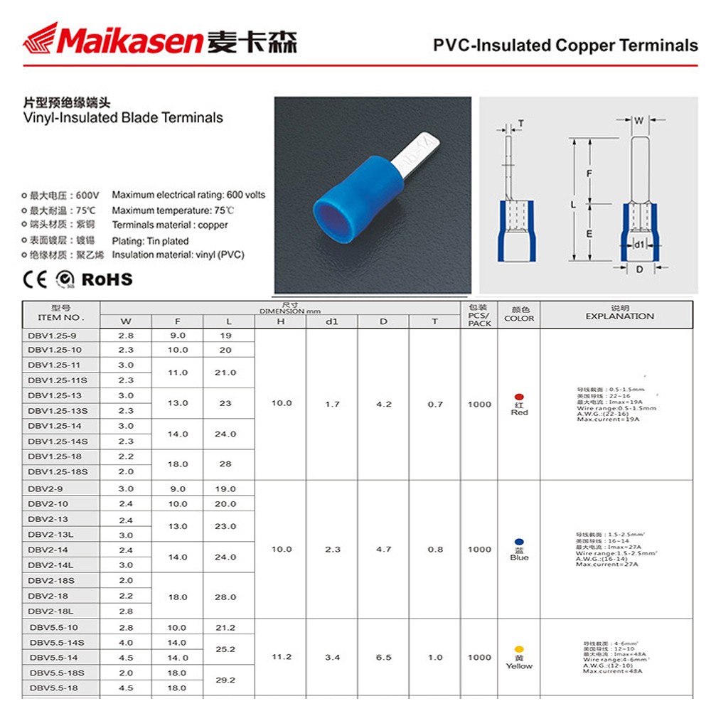 หางปลาตรง หางปลาย้ำสายแบบตรง DBV1.25-10, 2-10, 5.5-14 บรรจุถุงละ 20 ตัว