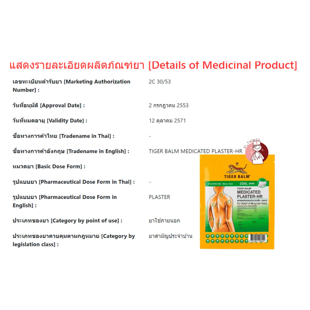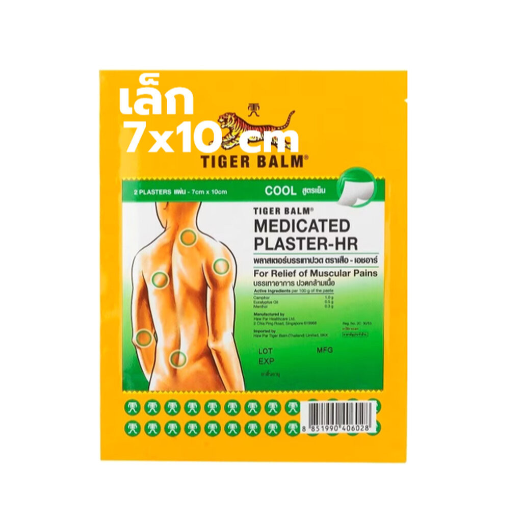 [1ซอง] พลาสเตอร์ บรรเทาปวด ตราเสือ สูตรเย็น 2 ขนาด Tiger Blam Medicated Plaster HR