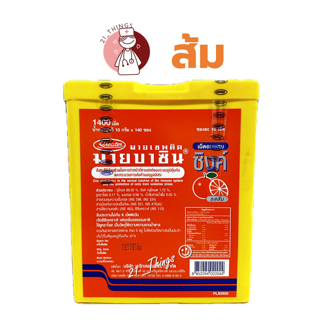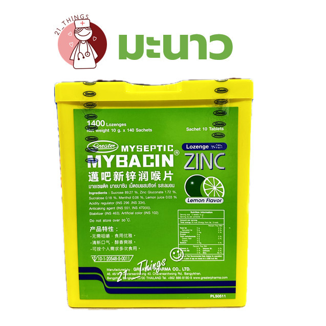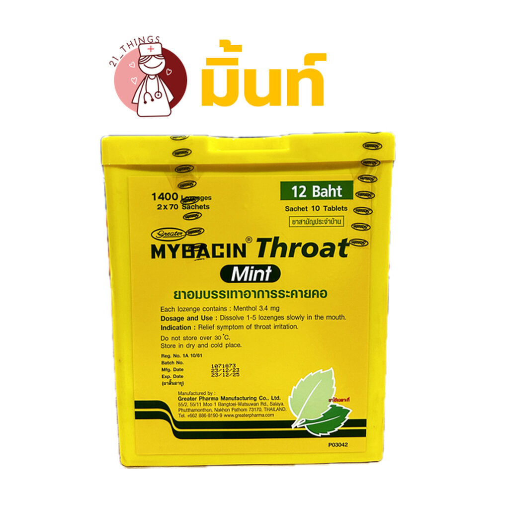 [ยกถัง] Mybacin มายบาซิน ถังละ 140 ซอง มี 3 รส (มิ้นท์ / ส้ม / มะนาว) ยาอม ลูกอม MYSEPTIC