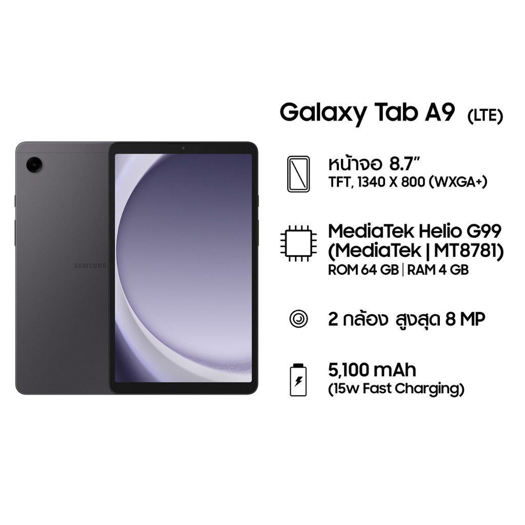 Samsung Galaxy Tab A9 (LTE) (4/64) (8/128) ประกันศูนย์ 12 เดือน [ หน้าจอ 8.7 นิ้ว แบต 5,100 mAh]