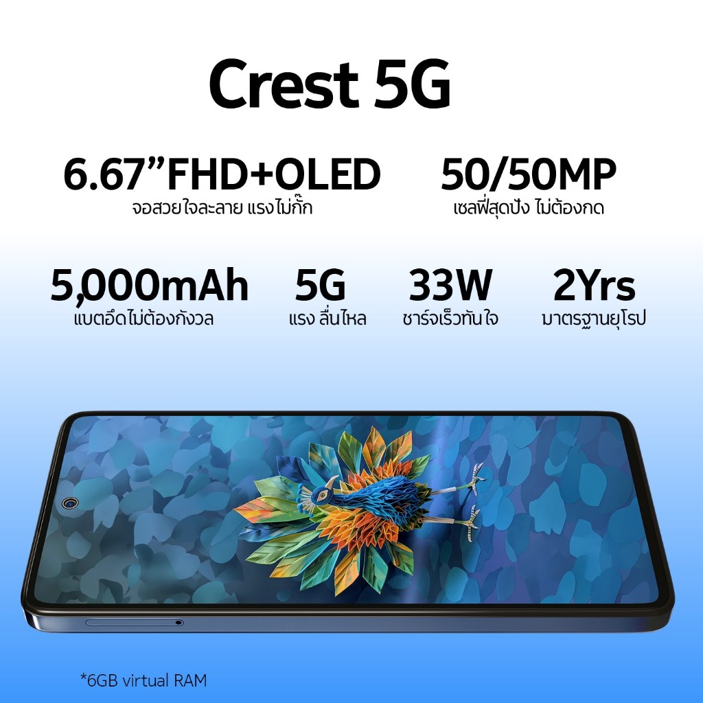 HMD Crest 5G (6/128) ประกันศูนย์ 1 ปี [หน้าจอ 6.67 นิ้ว แบต 5000 mAh]