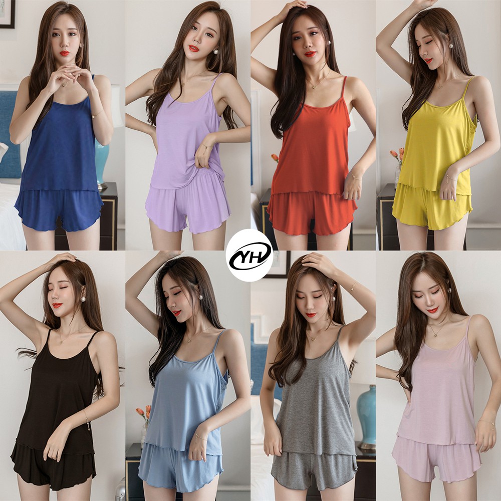 💥YH#5885💥 ชุดนอนสตรี ชุดนอนสไตล์มินิมอล เซตชุดนอนผ้านุ่มผ้าดีใส่สบายๆ ชุดนอนสายเดี่ยว+กางเกงขาสั้น 8สี