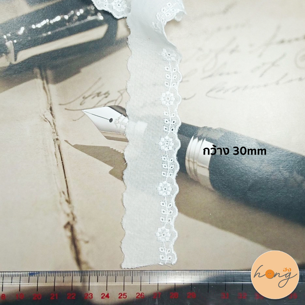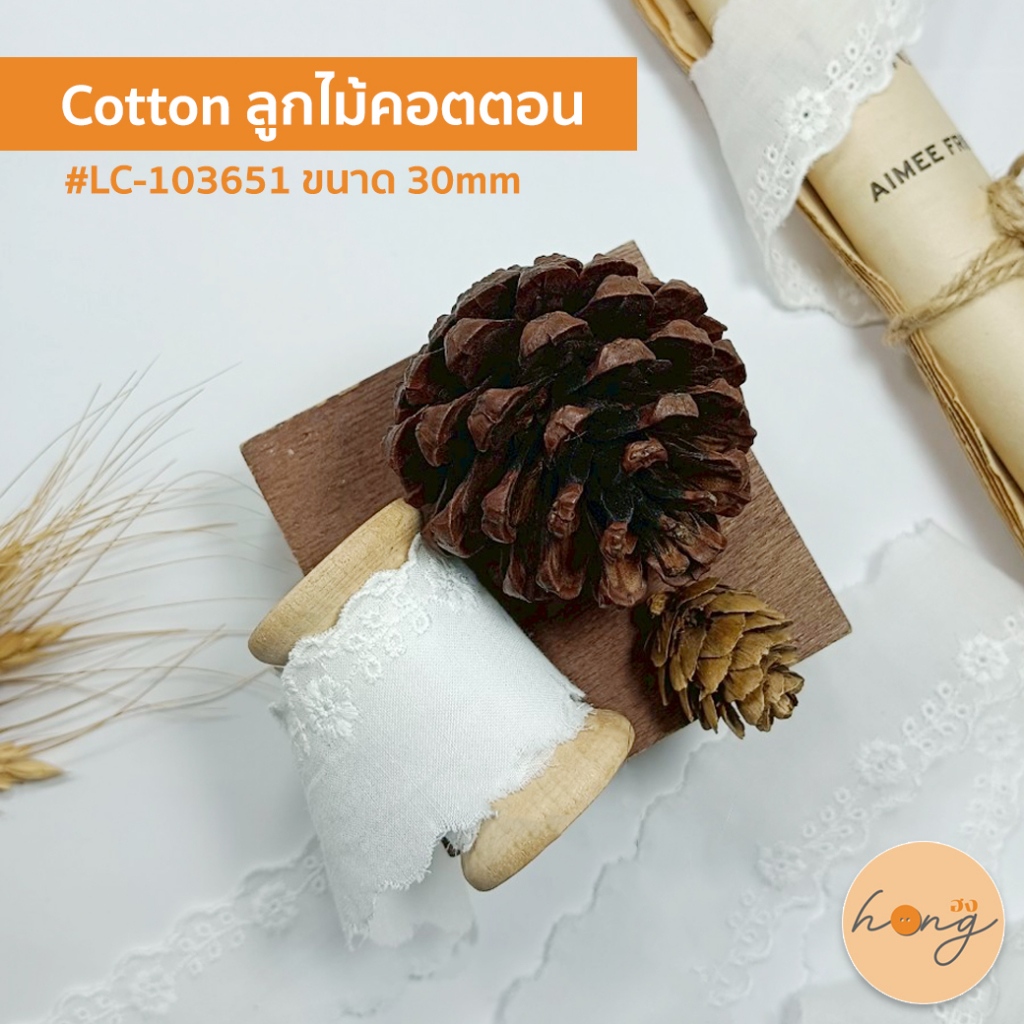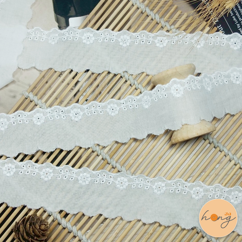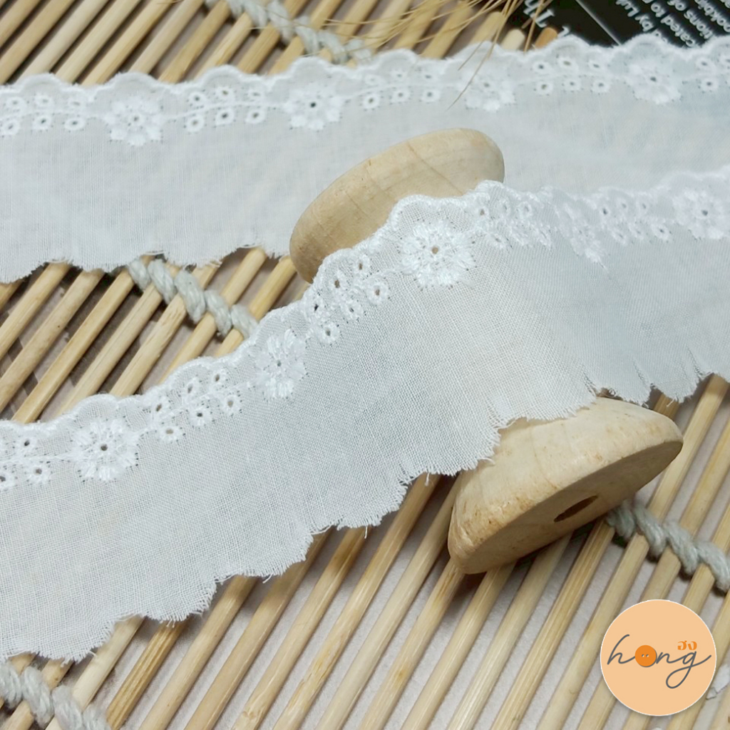 ลูกไม้คอตตอน Cotton ลูกไม้ตกแต่ง #103651 - สีขาว 1 หลา = 36 นิ้ว {พร้อมส่งในไทย}