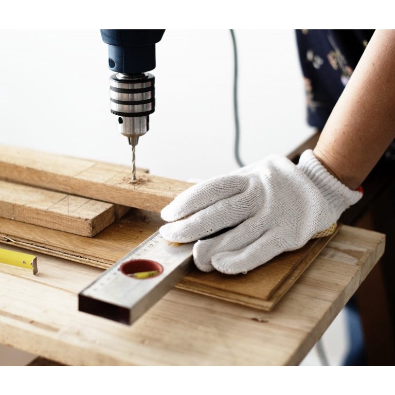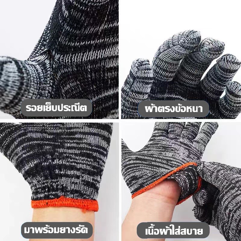 ถุงมือผ้าทอ บรรจุ1โหล(12 คู่) ราคาถูก ถุงมือผ้าฝ้าย ใส่ทำงาน ยกของ ก่อสร้าง