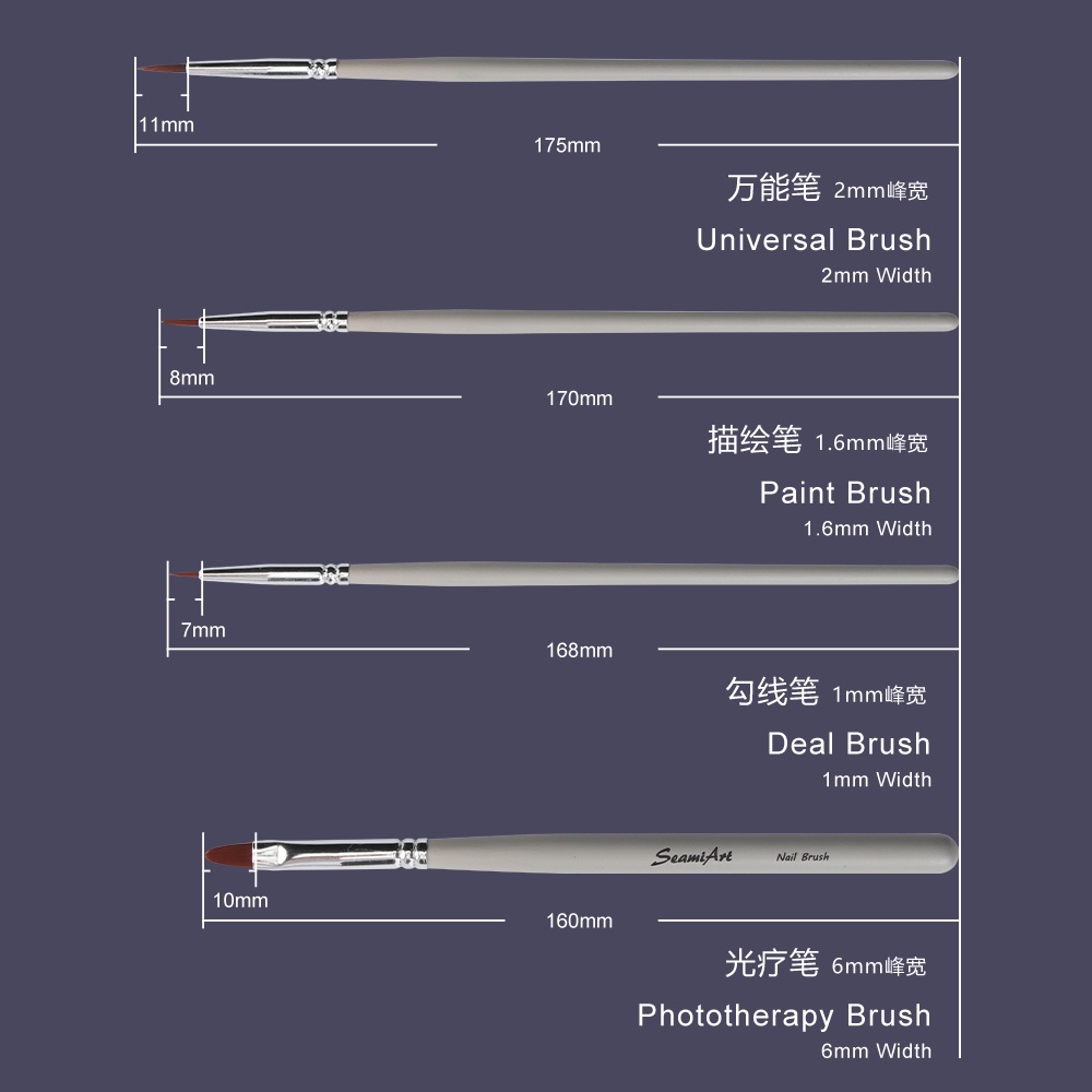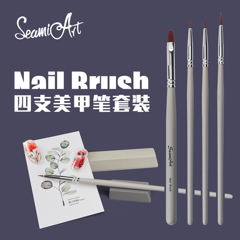 Seamiart ชุดแปรงทาสีน้ํามัน อะคริลิค สําหรับตกแต่งเล็บ 4 ชิ้น