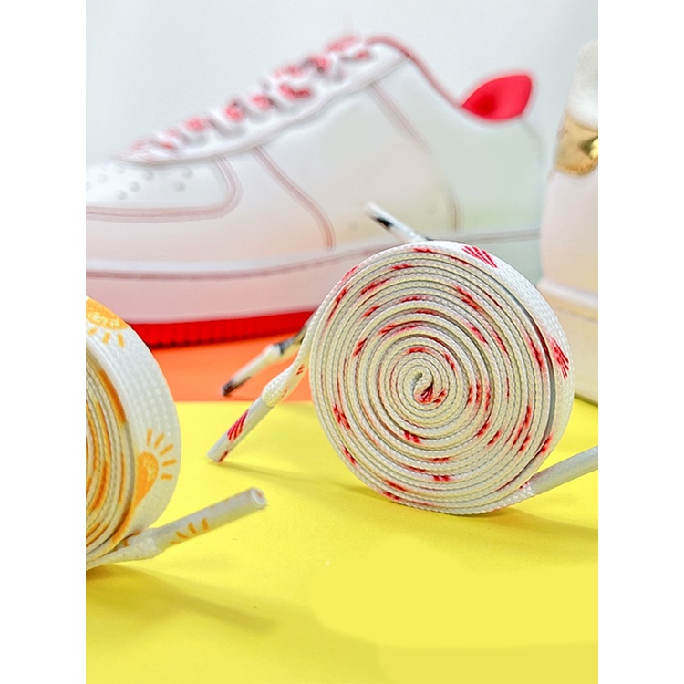 เชือกผูกรองเท้า พื้นแบน พิมพ์ลาย สวยหรู ขนาดเล็ก 120 เซนติเมตร สีขาว สําหรับเด็กผู้หญิง 1 คู่
