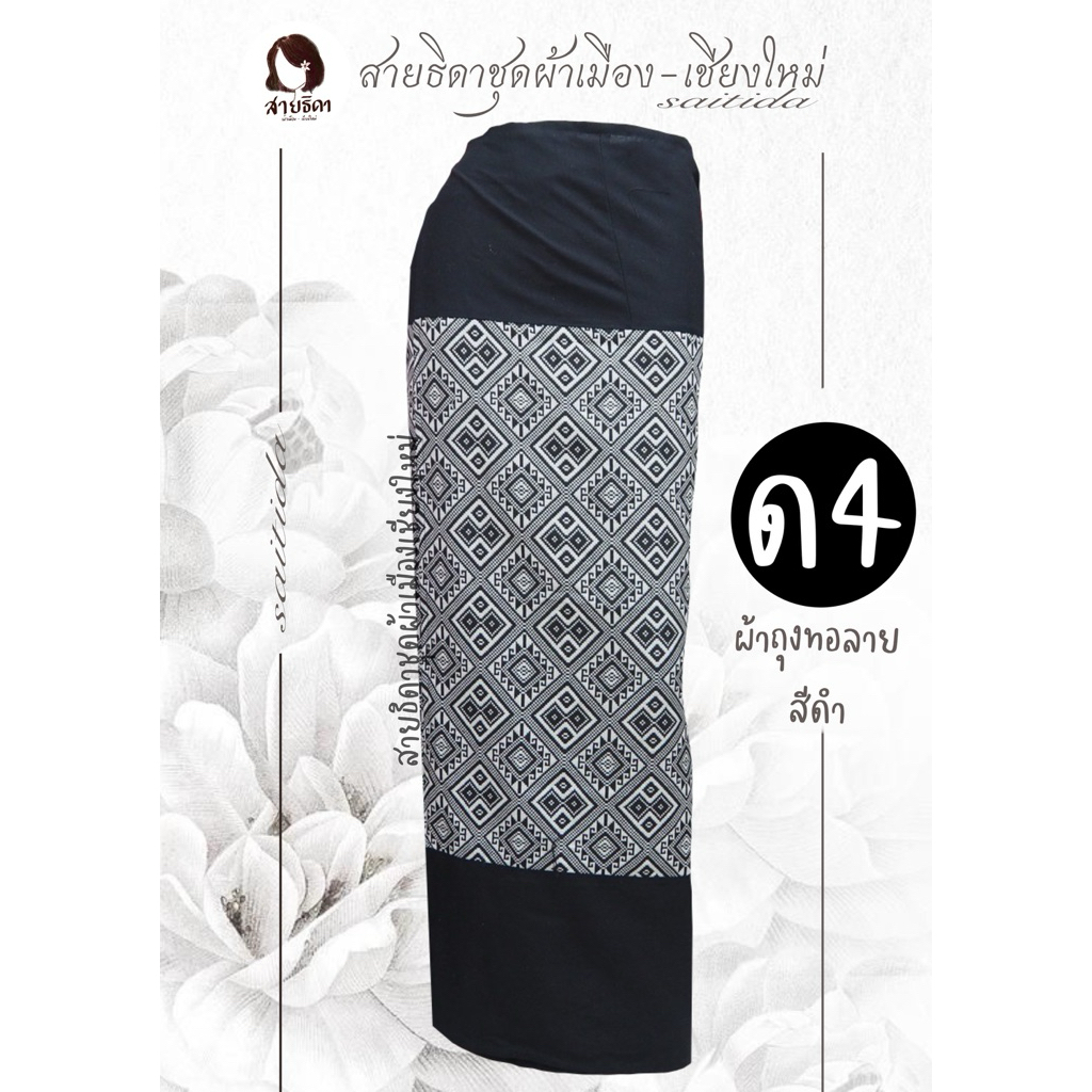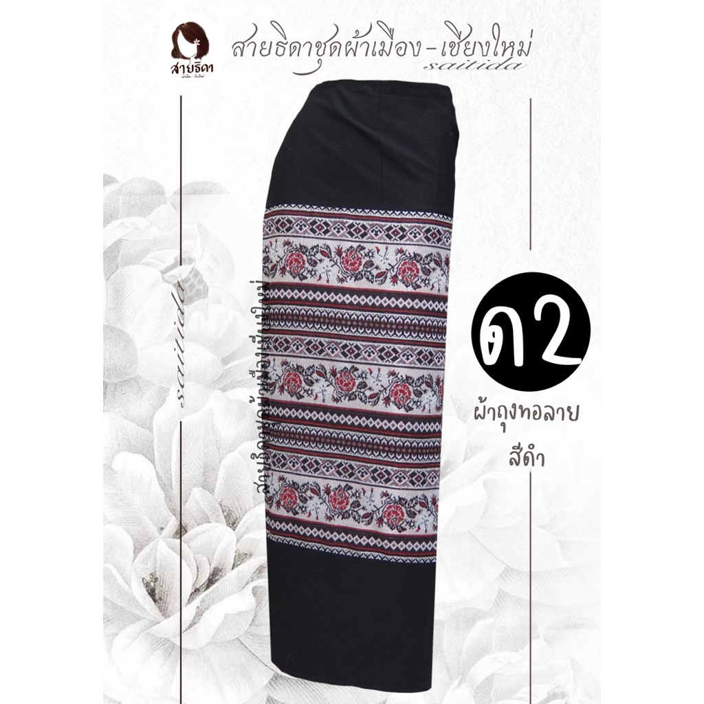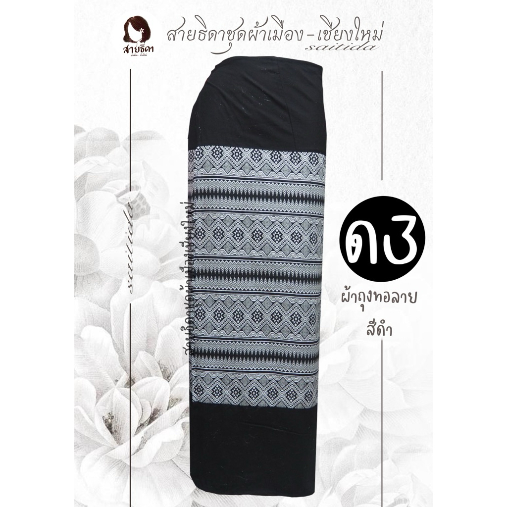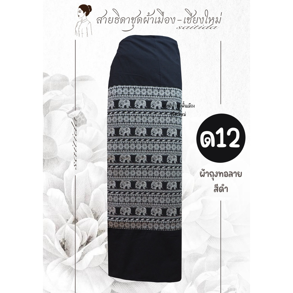 ผ้าถุงทอลายต่อหัวสีดำ เนื้อผ้าฝ้าย เย็บป้ายมีเชือกมัด