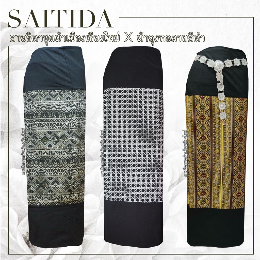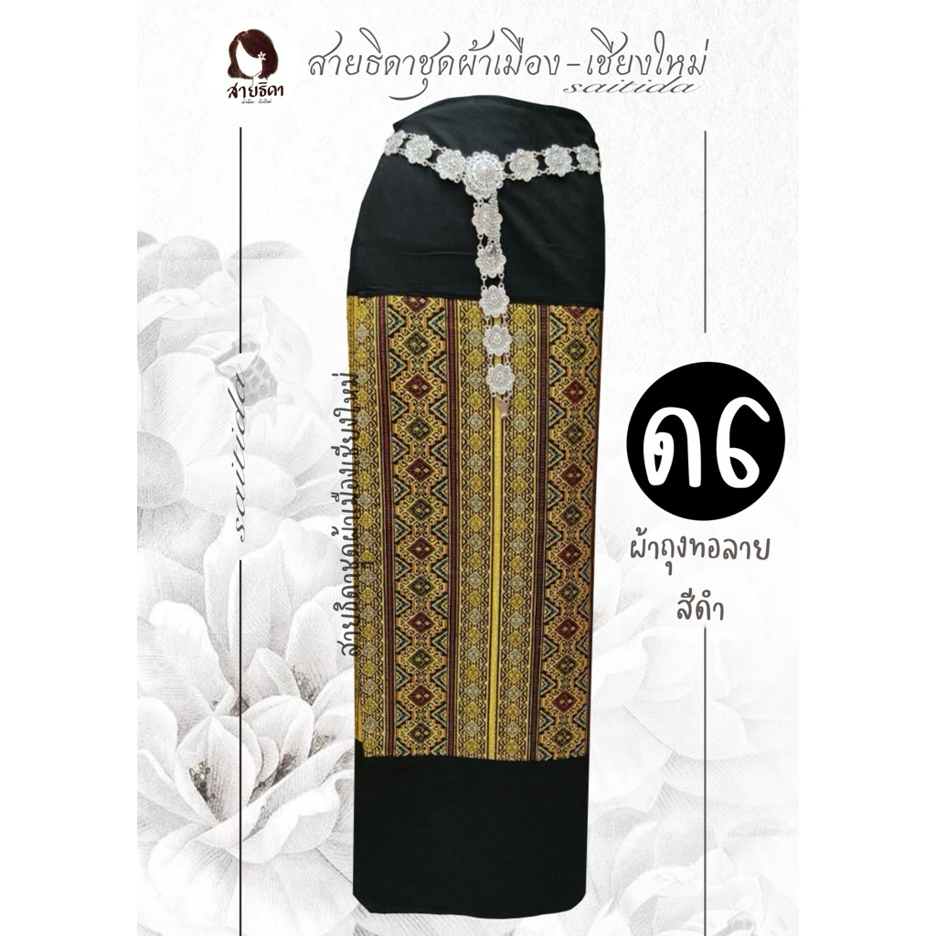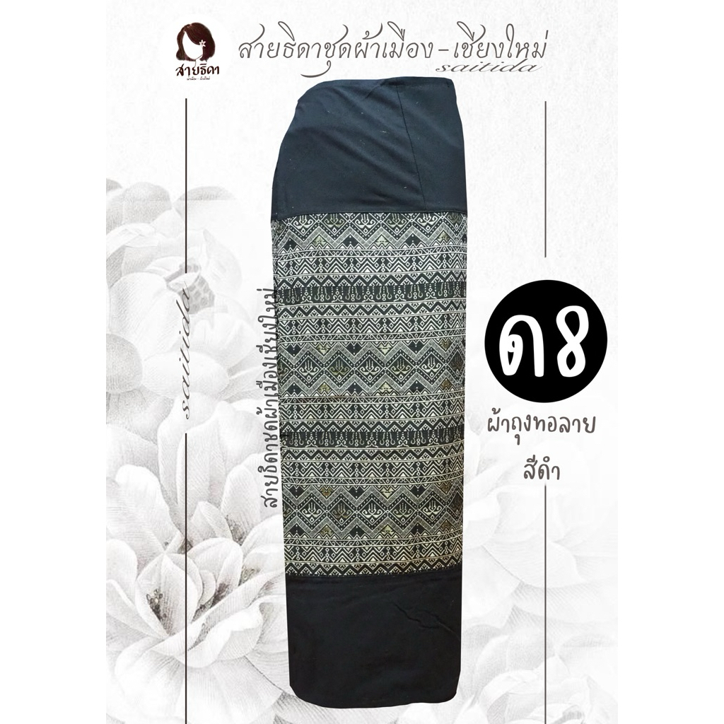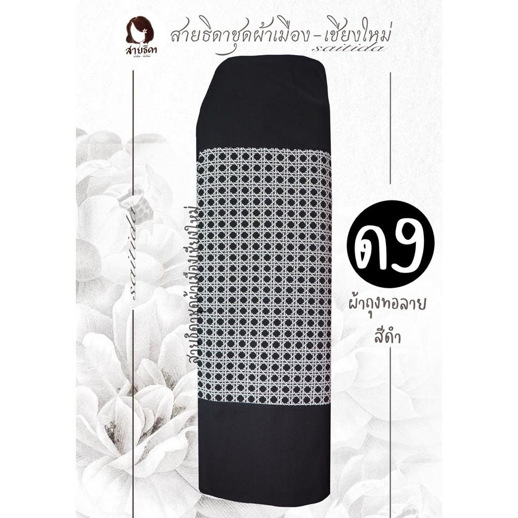 ผ้าถุงทอลายต่อหัวสีดำ เนื้อผ้าฝ้าย เย็บป้ายมีเชือกมัด