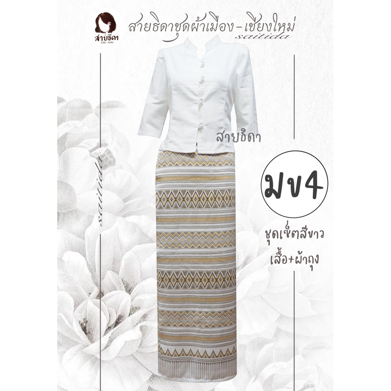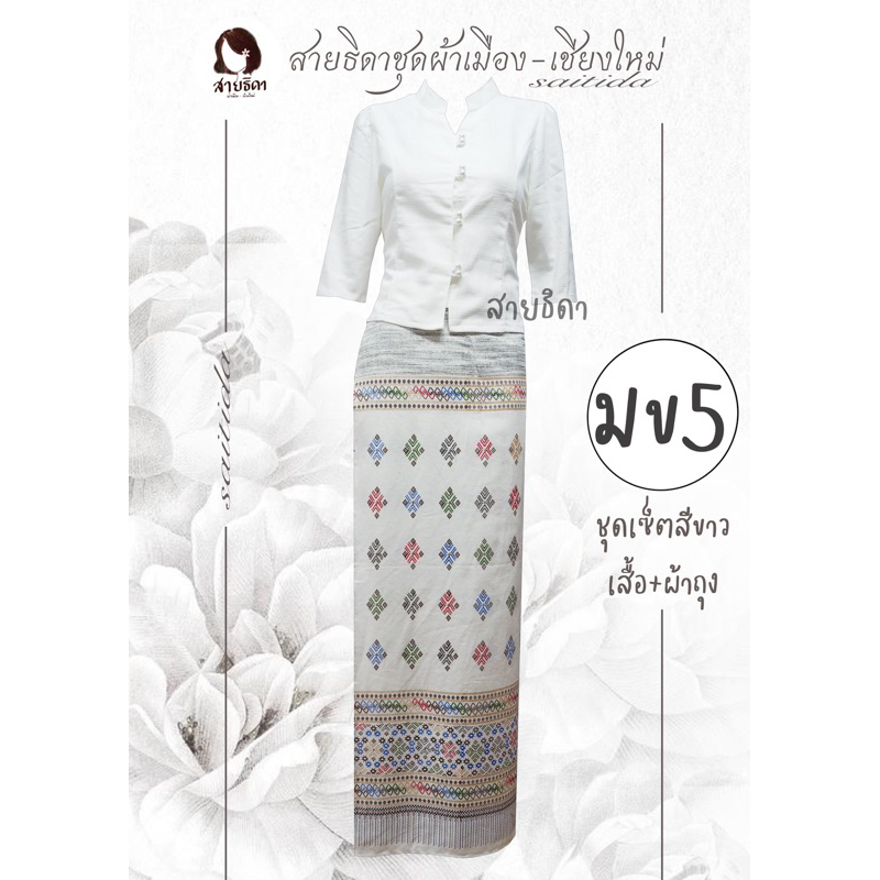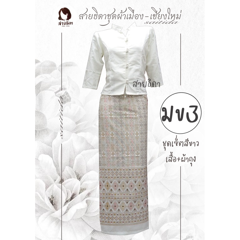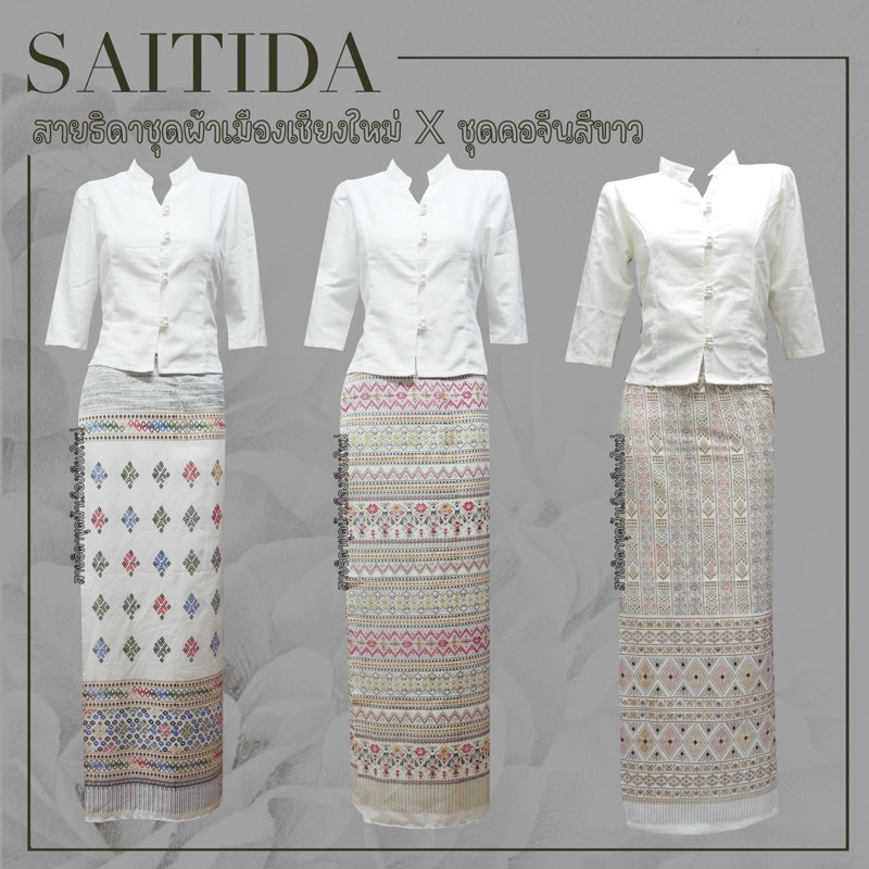 🌾ชุดพื้นเมืองประยุกต์สีขาว ทรงคอจีนทรงคล้ายจิตรลดา🌾