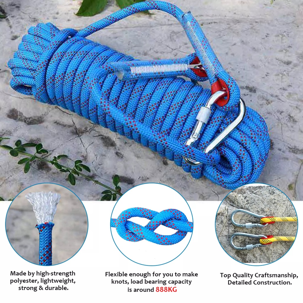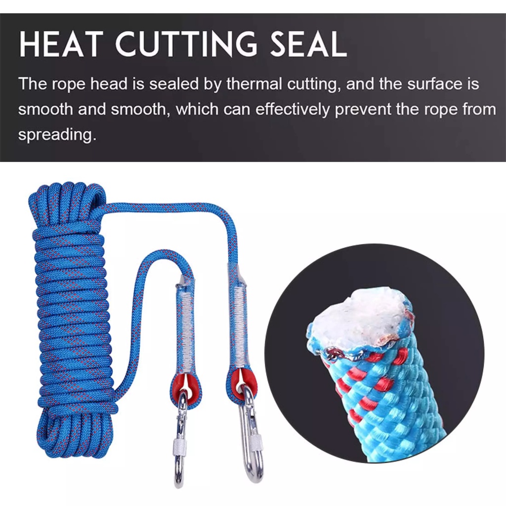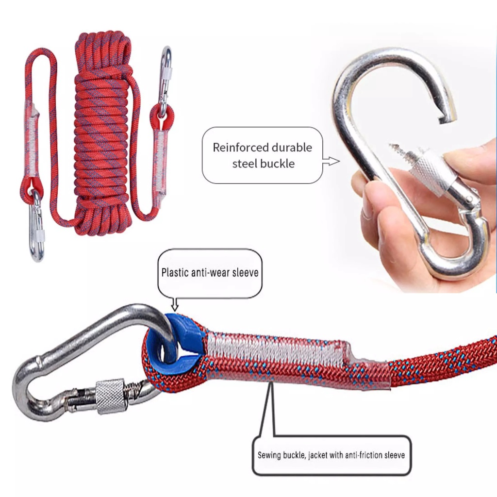 12 มม เชือกโรยตัว เชือกปีนเขา อุปกรณ์ปีนเขา อุปกรณ์โรยตัว 12mm Climbing Rope w/ Hook High Strength Emergency Safety Fire