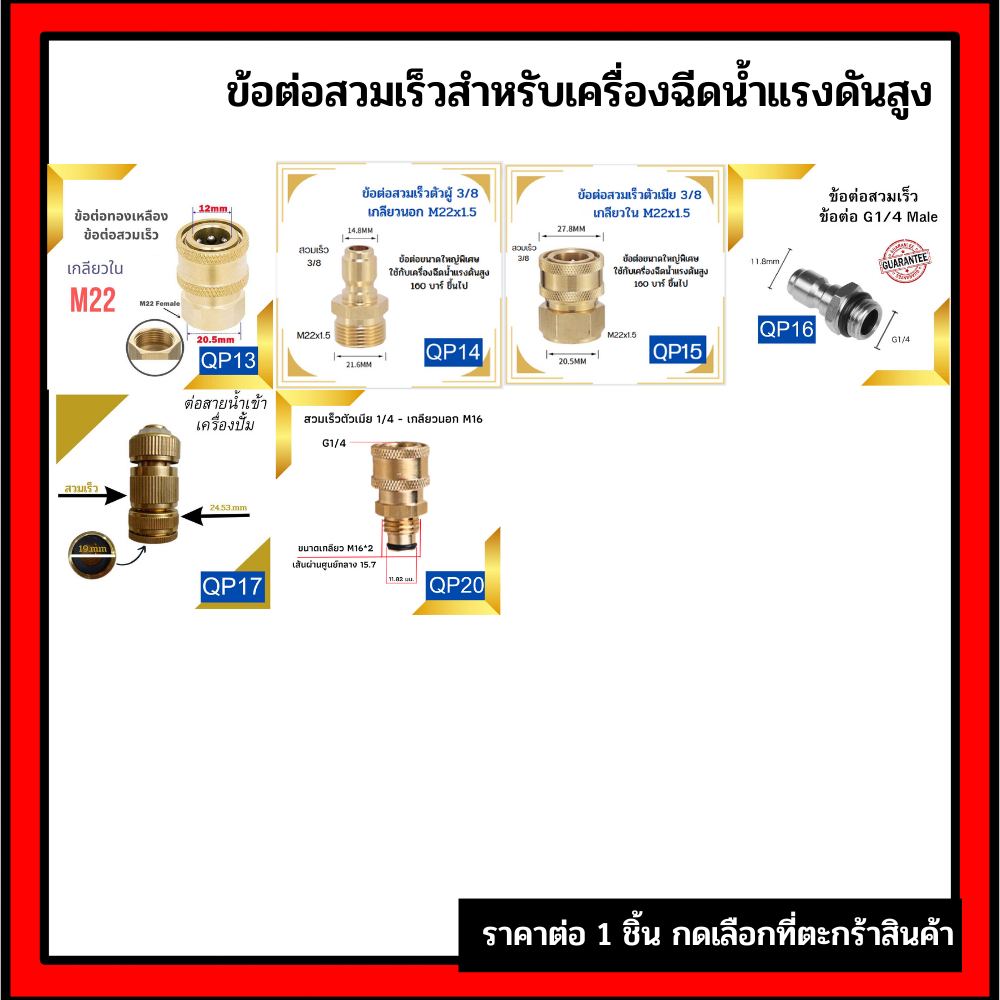 ข้อต่อสวมเร็ว ข้อต่อเครื่องฉีดน้ำแรงดันสูง ข่อต่อทองเหลือง ขอต่อแปลงเกลียว M22 M14 G1/4